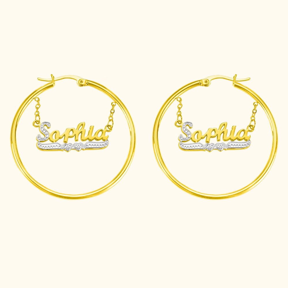 - Detta är ett mycket distinkt örhänge. Den anpassade namndelen är lindad inuti örhänget och hängs på örhängena med två tunna kedjor, som kommer att svänga något när du går och springer. Denna design gör örhänget mer utbytbart för att visa din unika personlighet.