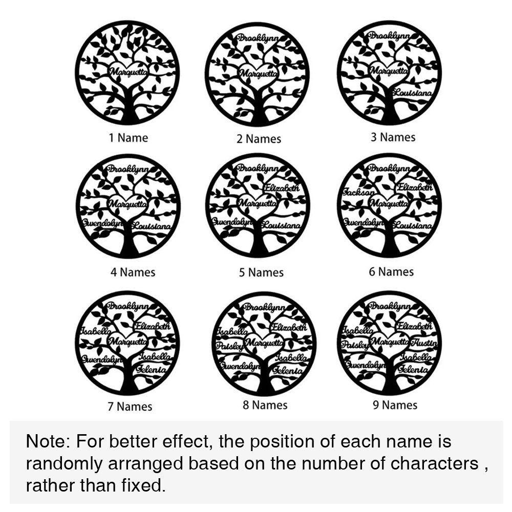 Choose the number of names you need to customize, then simply fill the tree with those significant names and important titles like Mom/Mum/Grammy/Love/Nana will be placed in the middle of the tree, surrounded by love. Now make it a unique symbol or jewelry in the world!
