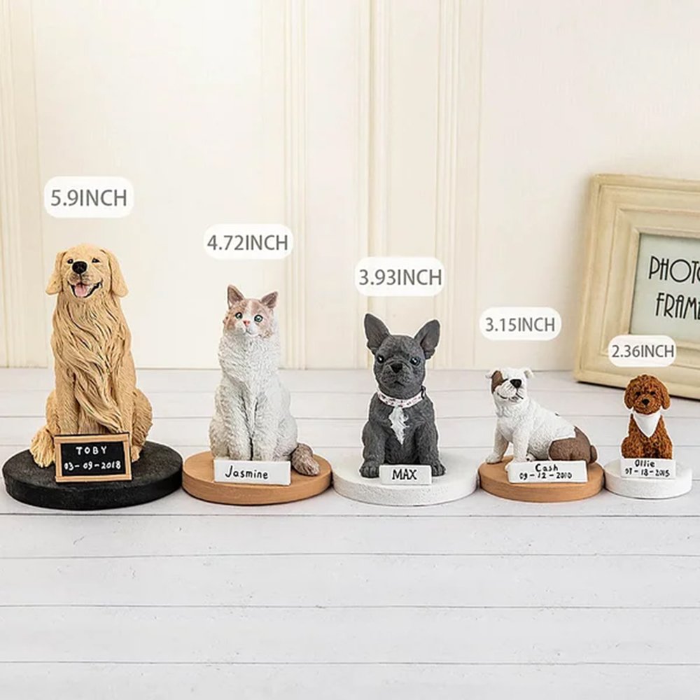 Eftersom varje husdjursskulptur är helt handgjord av våra hantverkare kanske vi inte kan återställa de små detaljerna i ditt husdjurs huvud till 100%, men vi kommer att göra vårt bästa för att göra en verklighetstrogen husdjursskulptur åt dig. Och från alla foton du laddar upp väljer vi det foto som är lämpligt för produktion som designritning av den slutliga produkten.