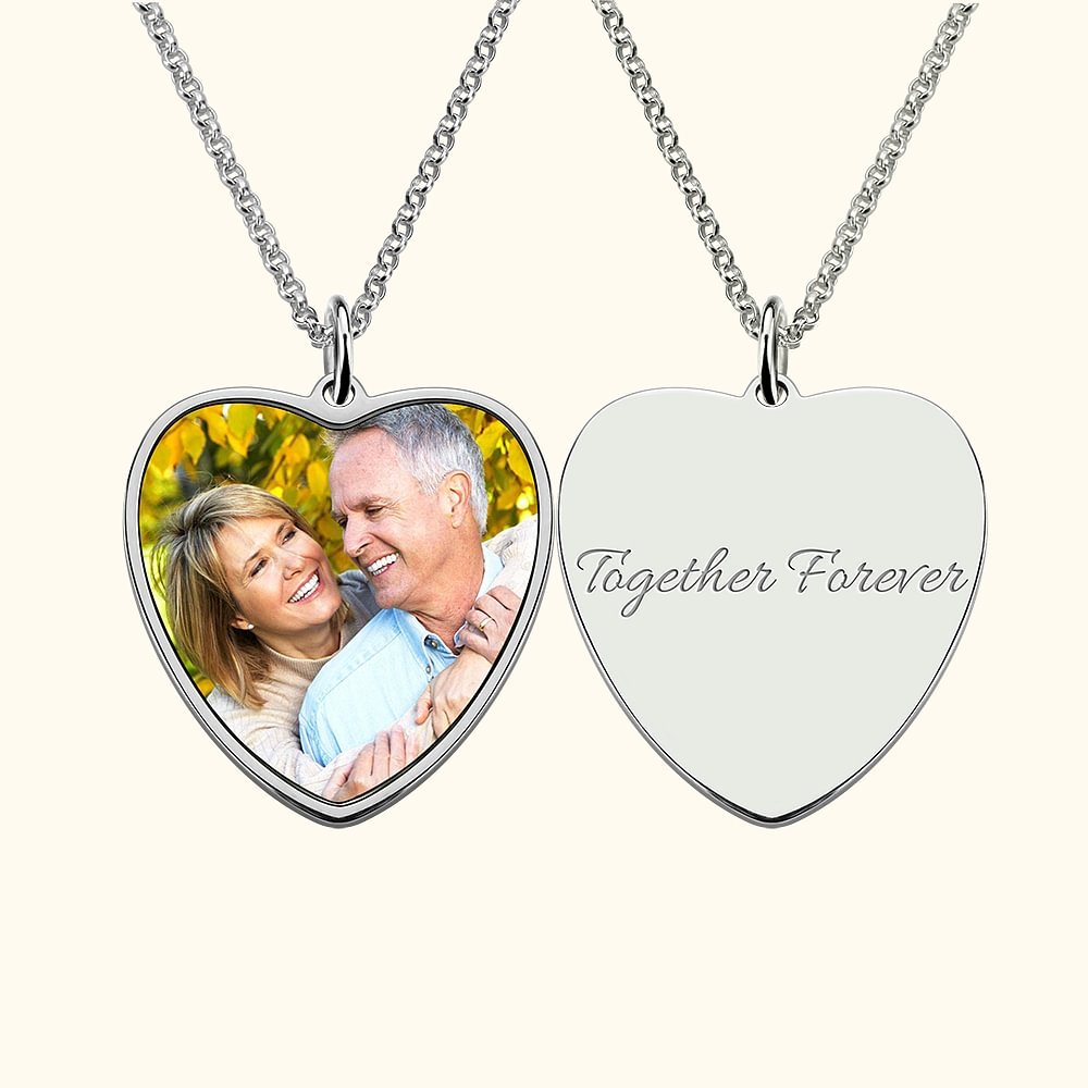 This necklace with a classic heart shape inlaid with a photo on the front and the back side can be customized with any special text, symbolizing the meaning of love is about giving and protecting the one. Love is the foundation we live in while it is unique by everyone being loved.