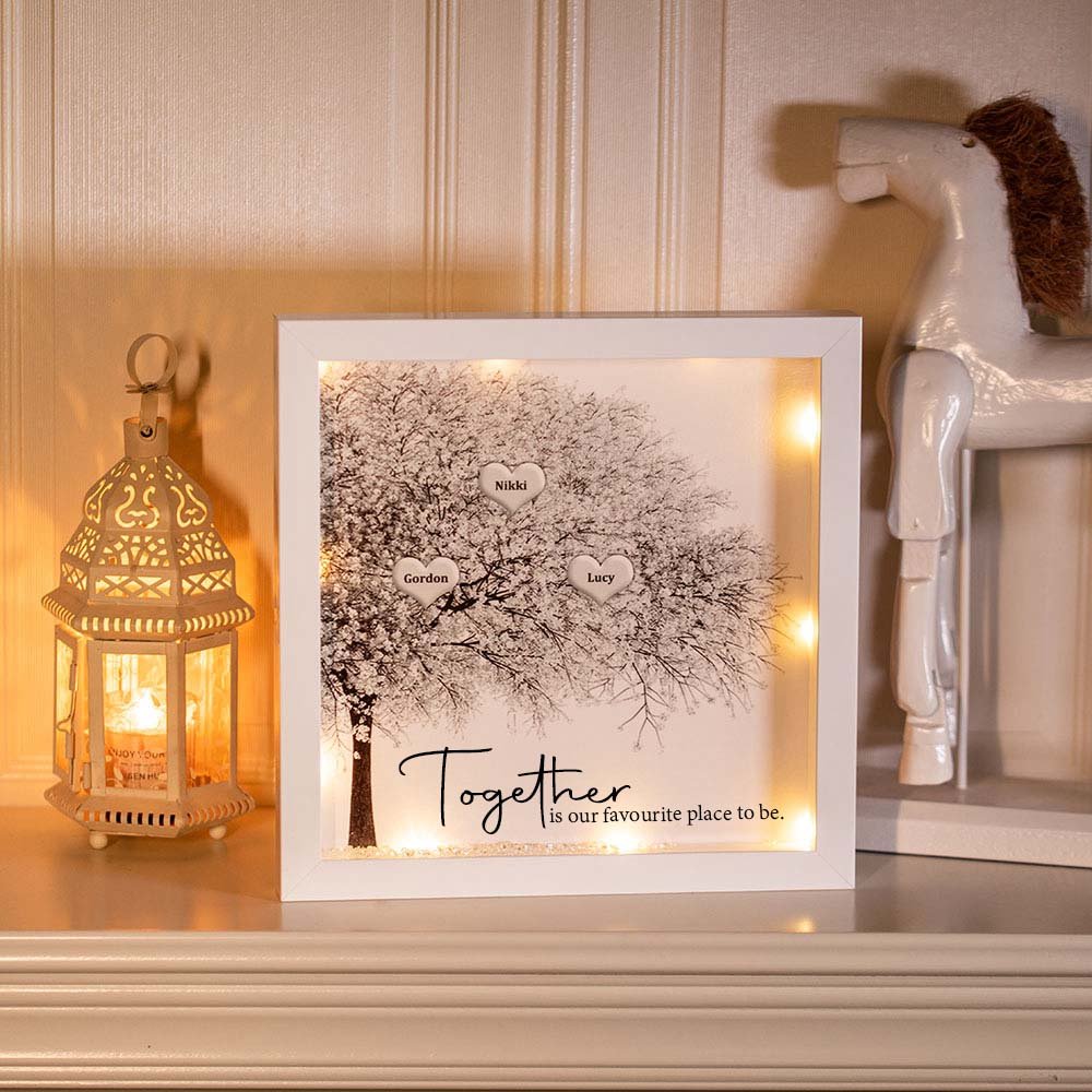 A circle of lights around the photo frame has a warm atmosphere even if it is turned on at night. Let the family feel like Christmas every day.