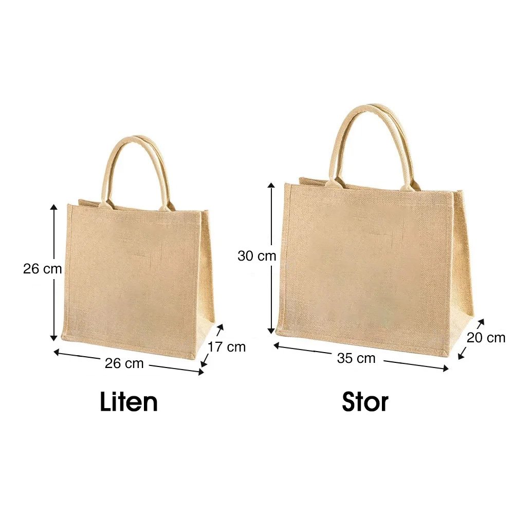 Tillverkad av miljövänlig jute, är den modern och vacker, i linje med begreppet miljöskydd. Jute är känt för sin hållbarhet, andningsförmåga och slitstyrka. Den är lätt att bära och är idealisk för daglig shopping, resor eller andra äventyrsaktiviteter. Det finns tre olika modeller att välja mellan: öppen, med dragkedja och med magnetknapp.