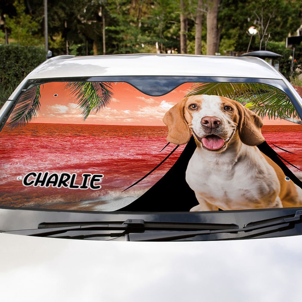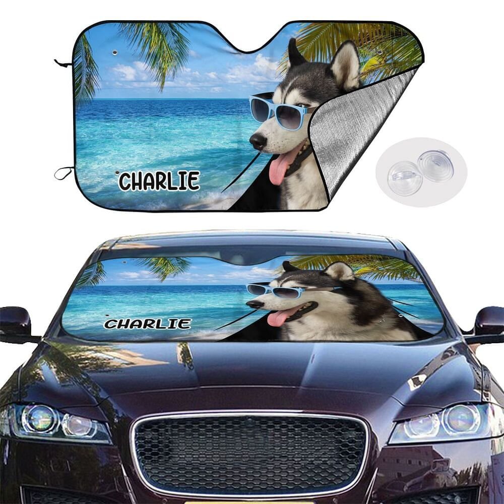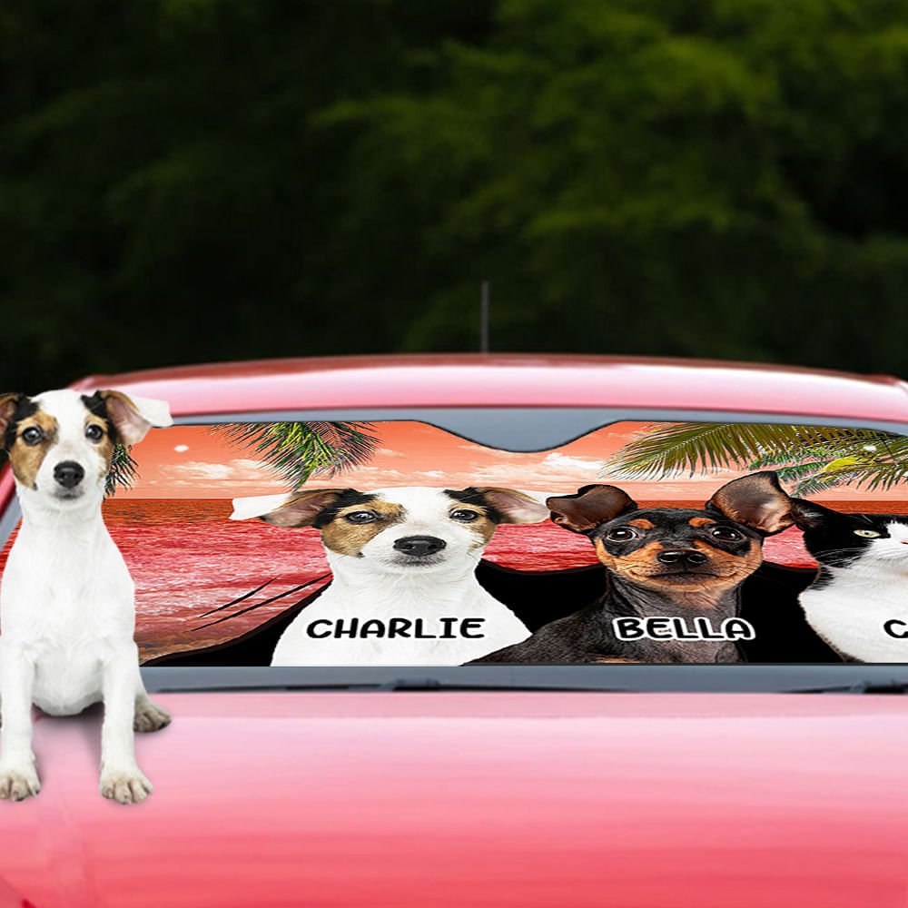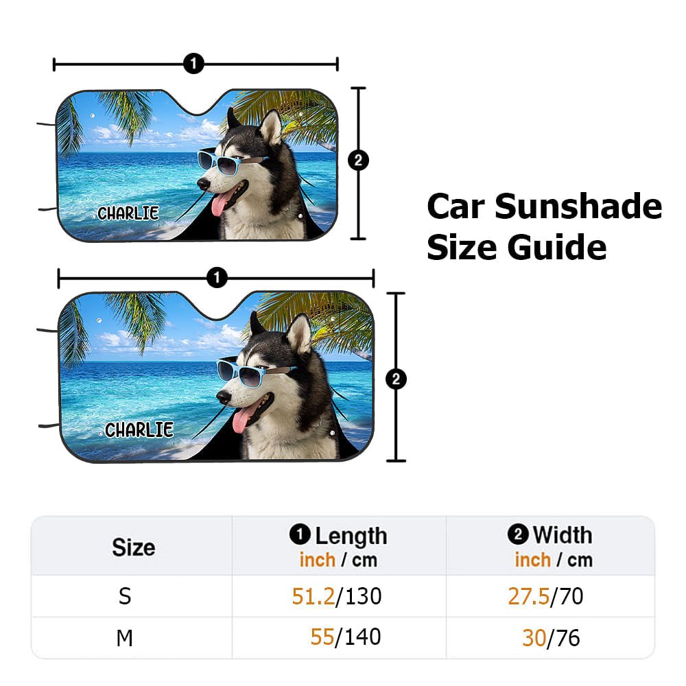 This windshield sunshade cleverly blends the carefree, sun-kissed elements of the beach, adding a cozy and comfortable feel. Moreover, displaying 1-3 photos and names of your beloved pet on the sunshade lets you enjoy your furry family member in your daily life, making the accessory truly personal and heartfelt.