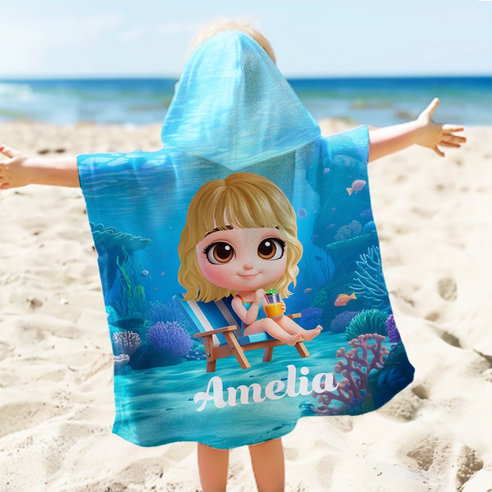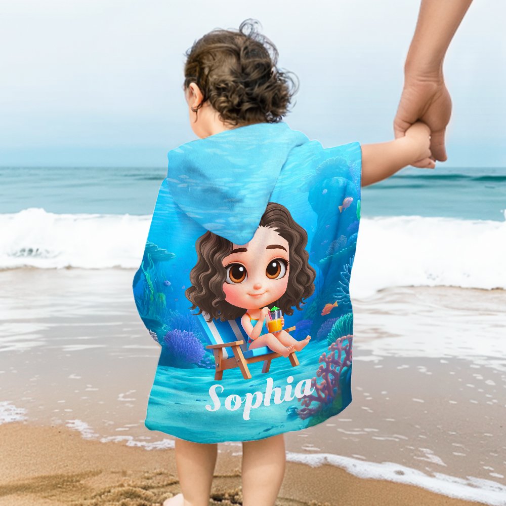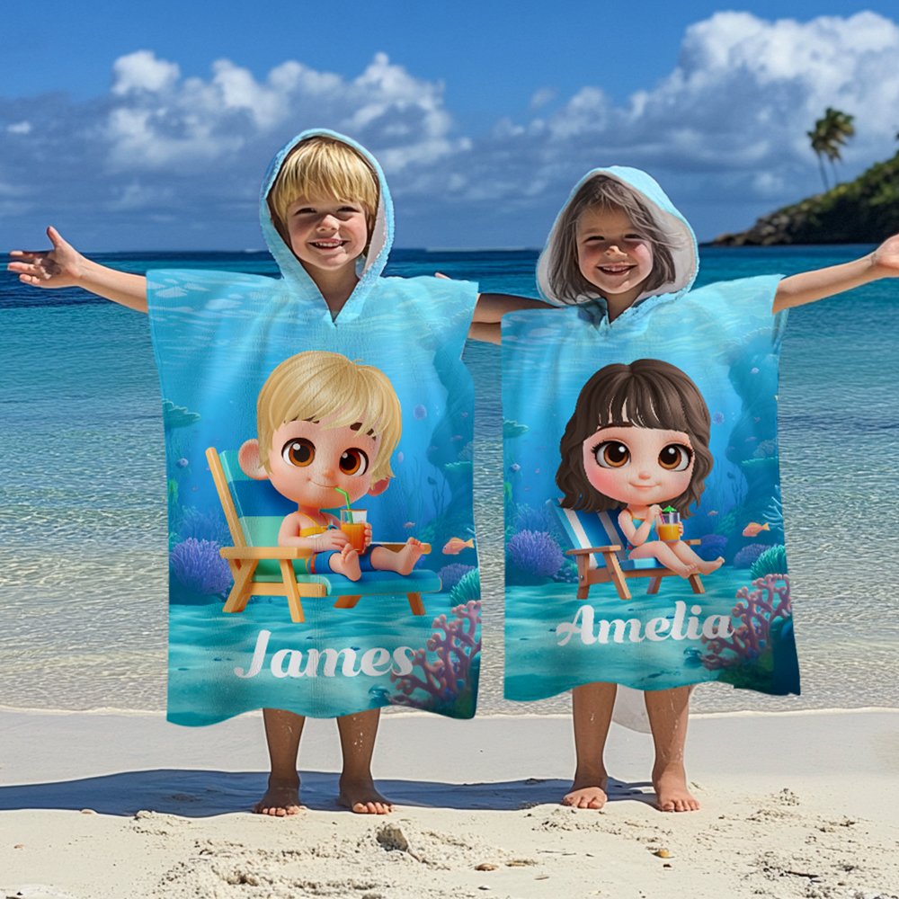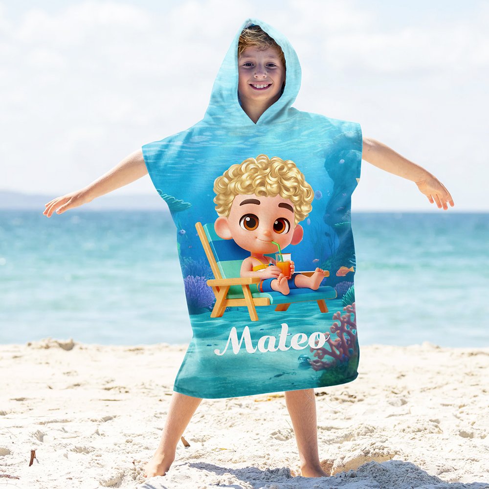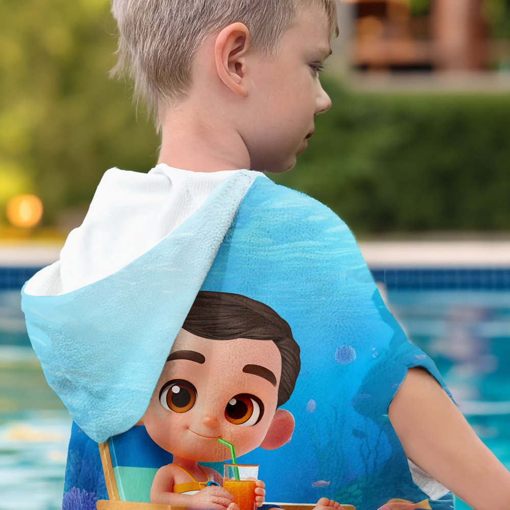 Oavsett om det är till en födelsedag, barndagen eller som en överraskning inför en semesterresa är denna strandhandduk en fantastisk present till ditt barn, liksom till familj och vänner med små barn. Denna personliga strandhandduk med huva för barn är inte bara ett praktiskt sommartillbehör