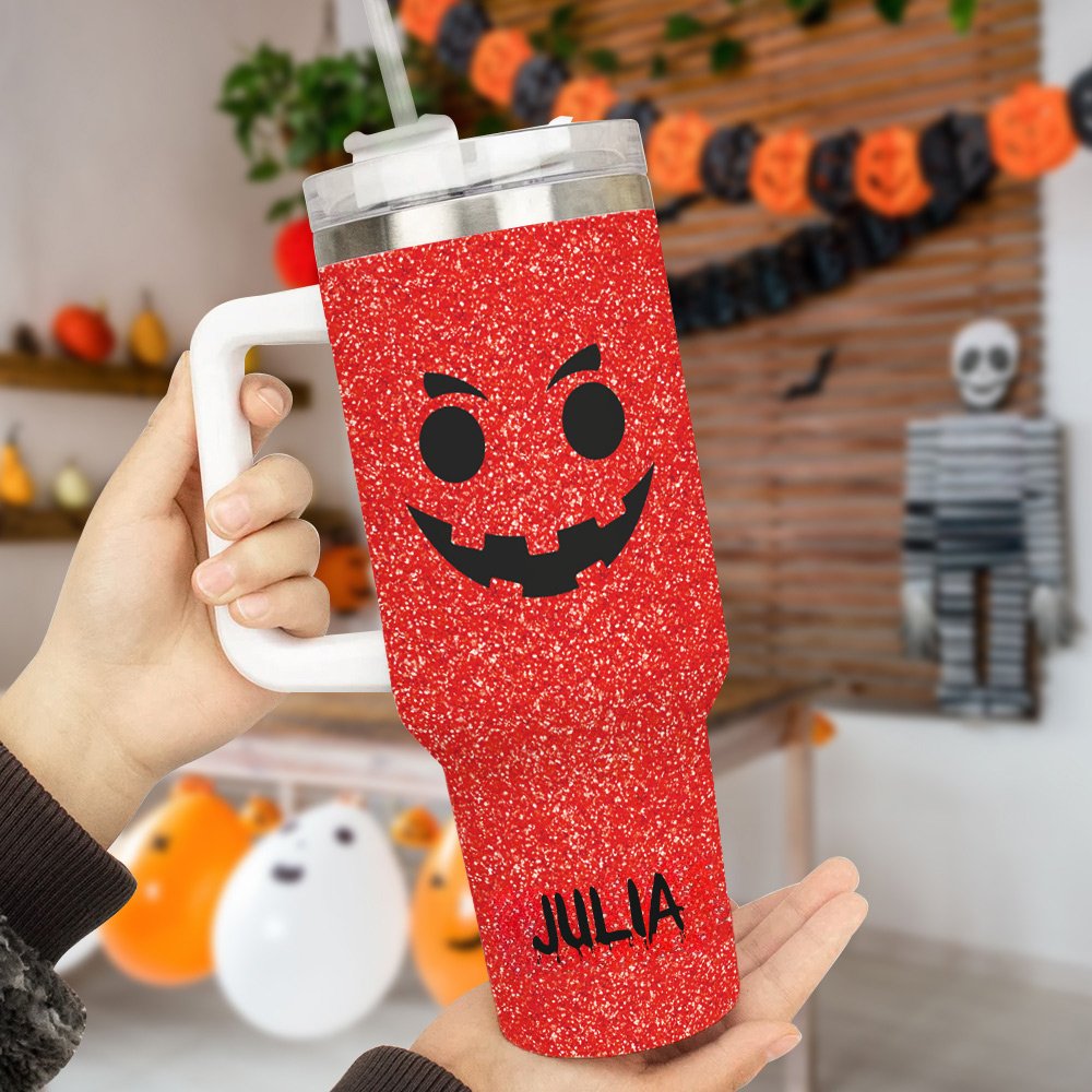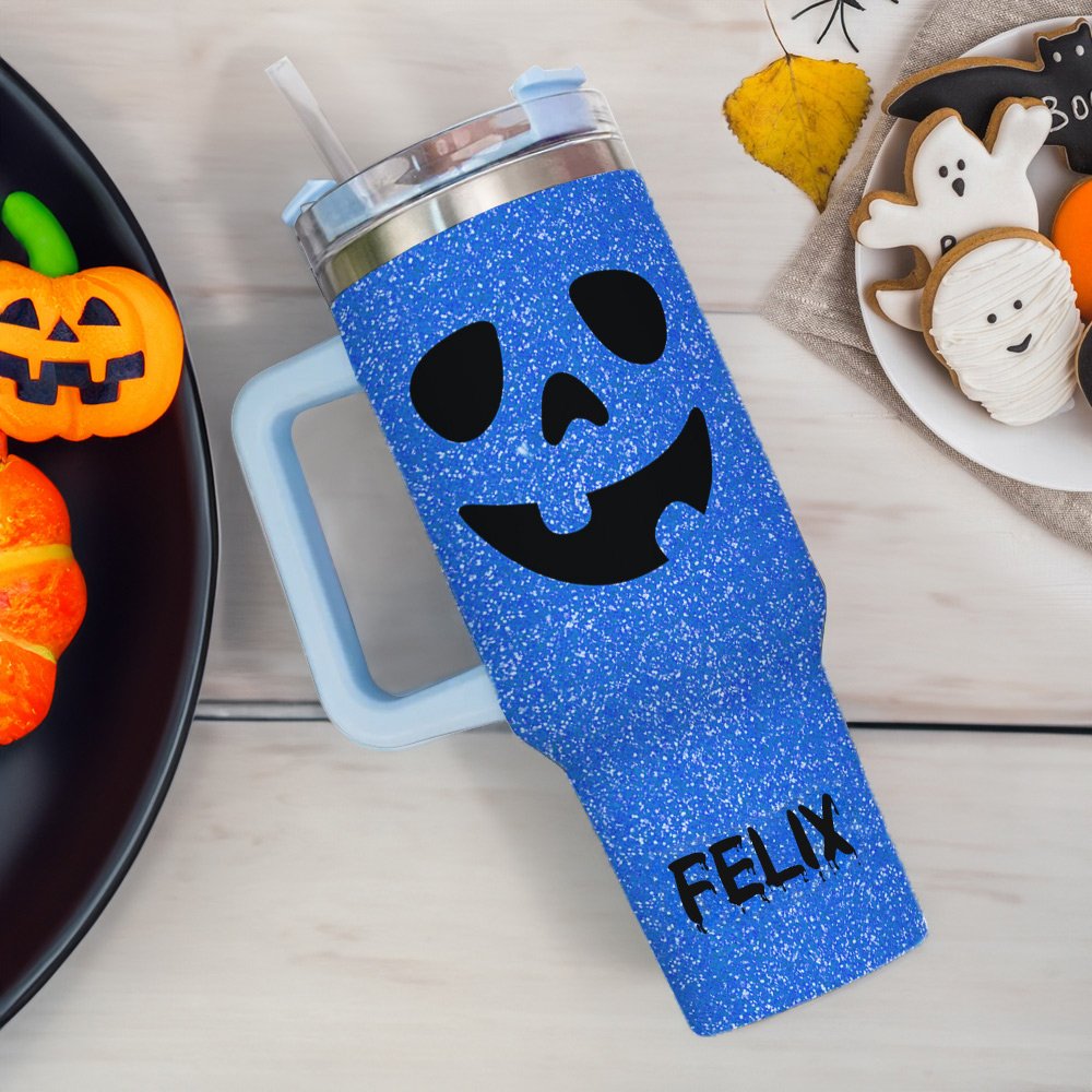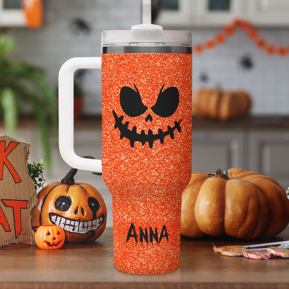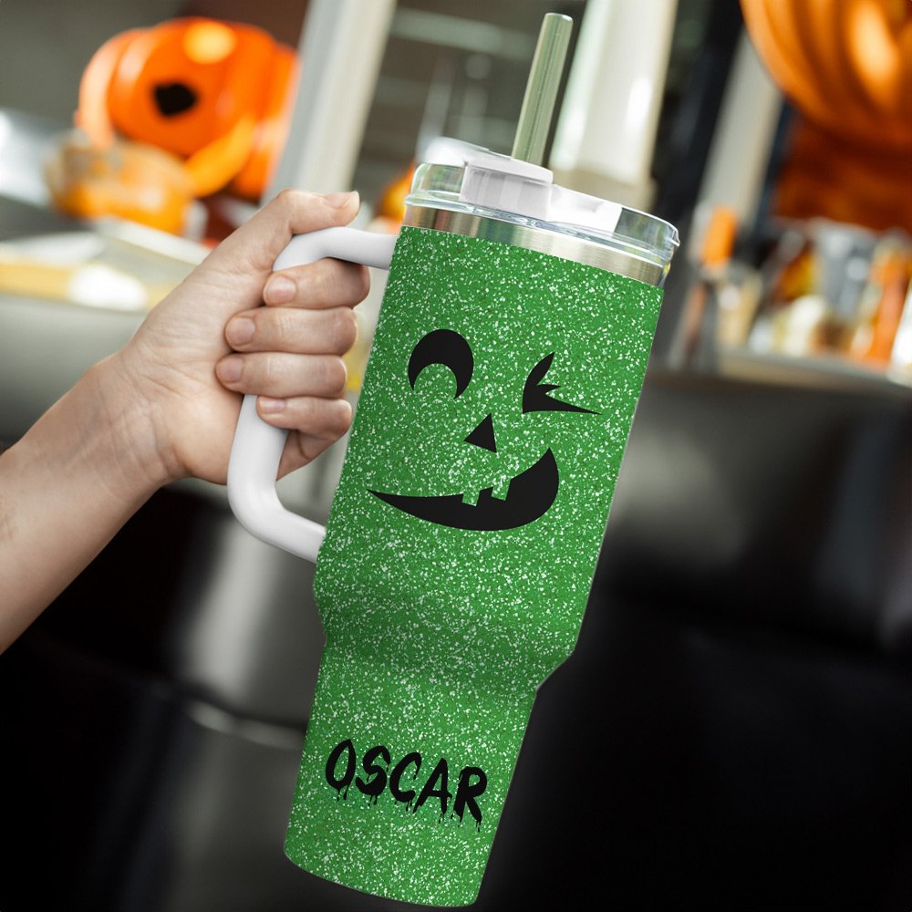 Du kan välja ett av 143 olika pumpauttryck och anpassa ditt namn på koppens kropp för att säkerställa att varje kopp är unik. De ljusa flashfärgerna och pumpauttrycksdesignen skapar en stark Halloween-anda; koppkroppen är en imiterad paljettryckseffekt, inte riktiga paljetter. Oavsett om du föredrar djärva, subtila eller sofistikerade färger har vi den perfekta färgkombinationen.