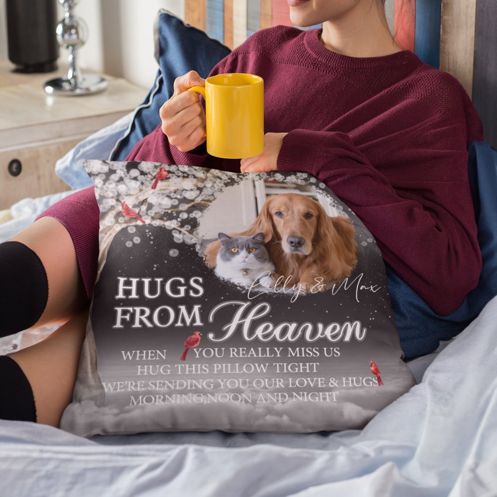 Vår kudde är en hjärtlig och meningsfull produkt som gör att du kan anpassa den med foton av nära och kära, husdjur eller andra värdefulla ögonblick. Du kan fritt lägga till relevanta namn och personliga detaljer. Kudden har också varm, omfamnande text, vilket ger ett tröstande sätt att hedra och komma ihåg nära och kära eller älskade husdjur som har gått bort.