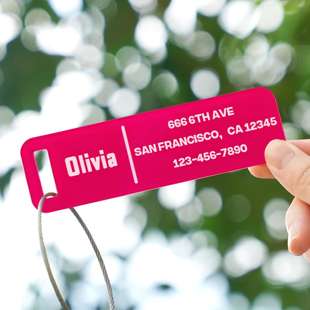 Gör din bagagetagg till något alldeles unikt med våra personliga designalternativ. Välj bland sju livfulla färger som passar din personlighet eller matchar ditt bagage. Med anpassningsfunktionen kan du lägga till ditt namn, initialer eller någon annan text du vill ha, vilket gör det enkelt att identifiera dina tillhörigheter med en blick.