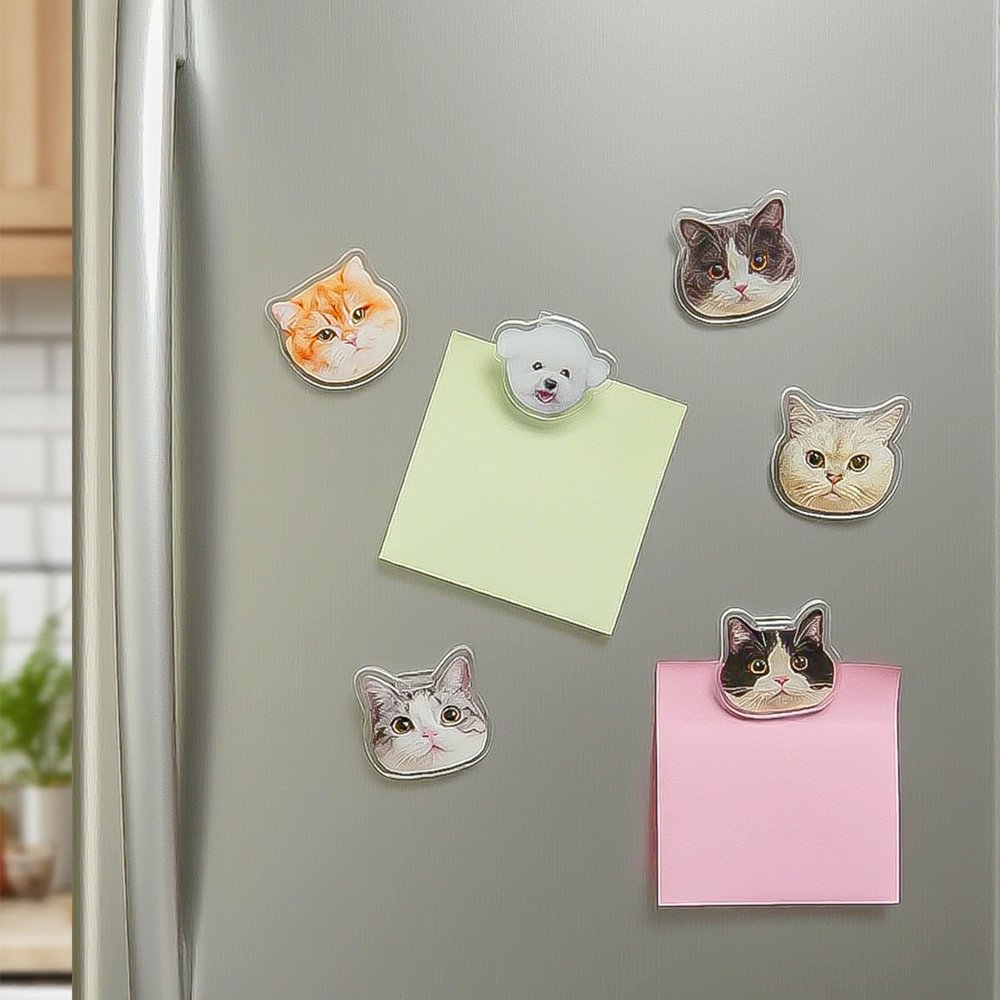 Den är tillverkad av högkvalitativ akryl och är både hållbar och lätt. Den robusta konstruktionen säkerställer att den tål frekvent daglig användning. Den magnetiska funktionen gör att djurporträttet enkelt kan fästas på alla metallytor och inte bara fästas på klämman utan också fungera som en magnetisk dekoration.