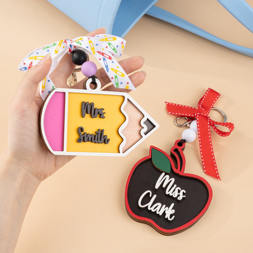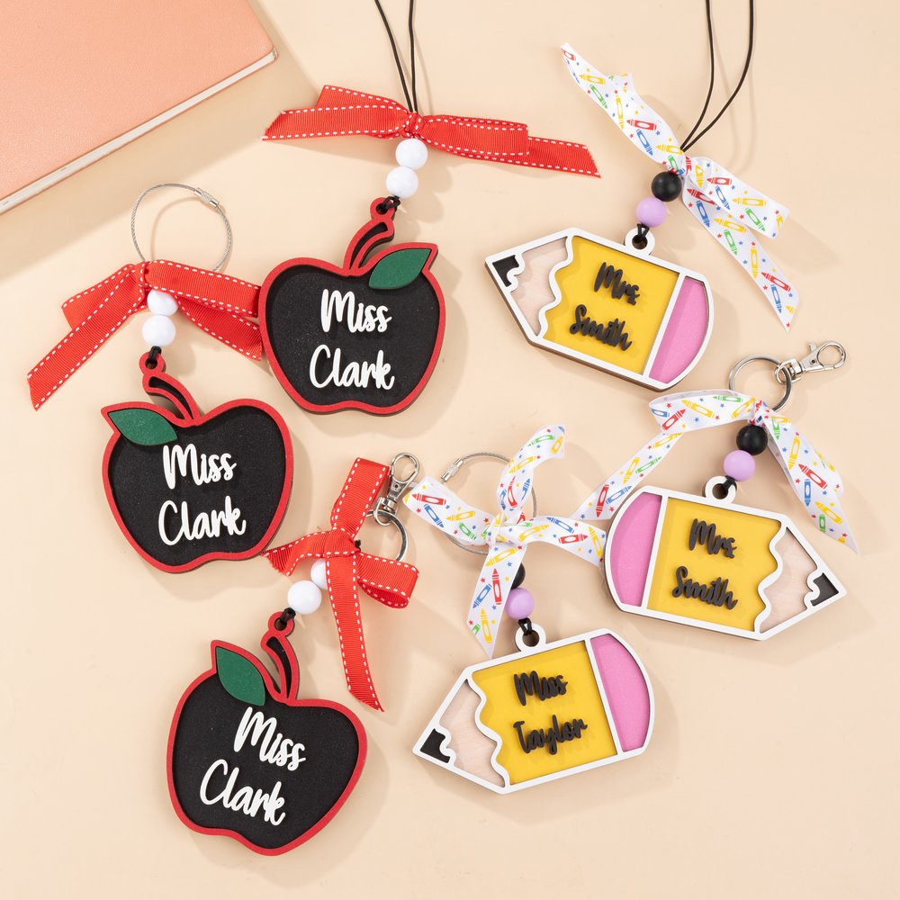 Centrerad kring pennan - som symboliserar inlärning och utbildning - och äpplet - som representerar kunskap och visdom - förkroppsligar denna design enkelhet samtidigt som den förmedlar pedagogisk betydelse, perfekt i linje med kärnan i läraryrket. Stöder personlig textanpassning, vilket förvandlar nyckelringens tillbehör till ett distinkt emblem. Varje användning fungerar som ett påtagligt uttryck för respekt för läraryrket.