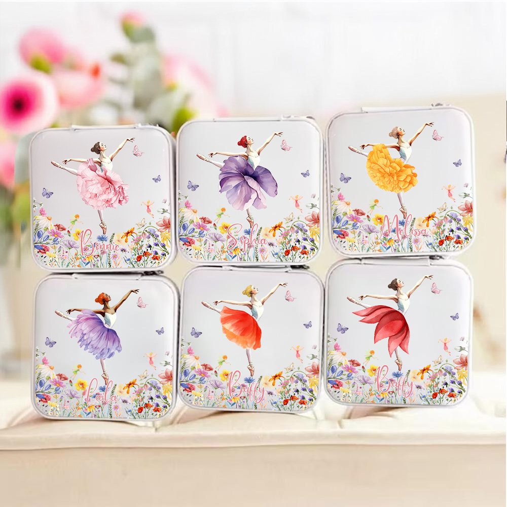 Framsidan av detta smyckeskrin visar en elegant balettdansös i rörelse, med en födelseblomma fint utformad som fållen på hennes kjol. Scenen kompletteras vackert av omgivande fjärilar och blommönster, vilket skapar en visuellt slående och charmig design. Dessutom kan smyckeskrinet göras personligt med ett eget namn, vilket förvandlar det till en unik och modern accessoar som återspeglar din stil.