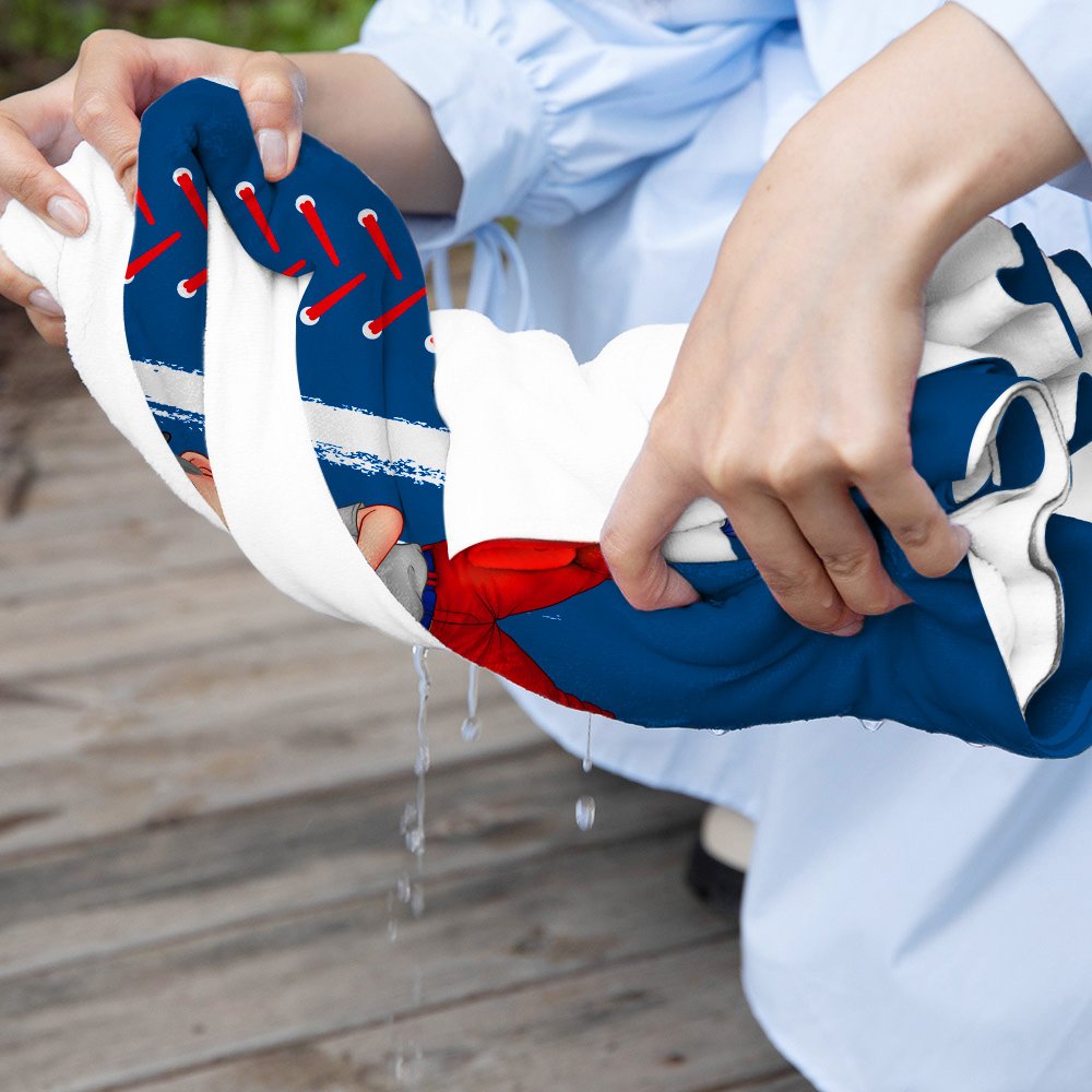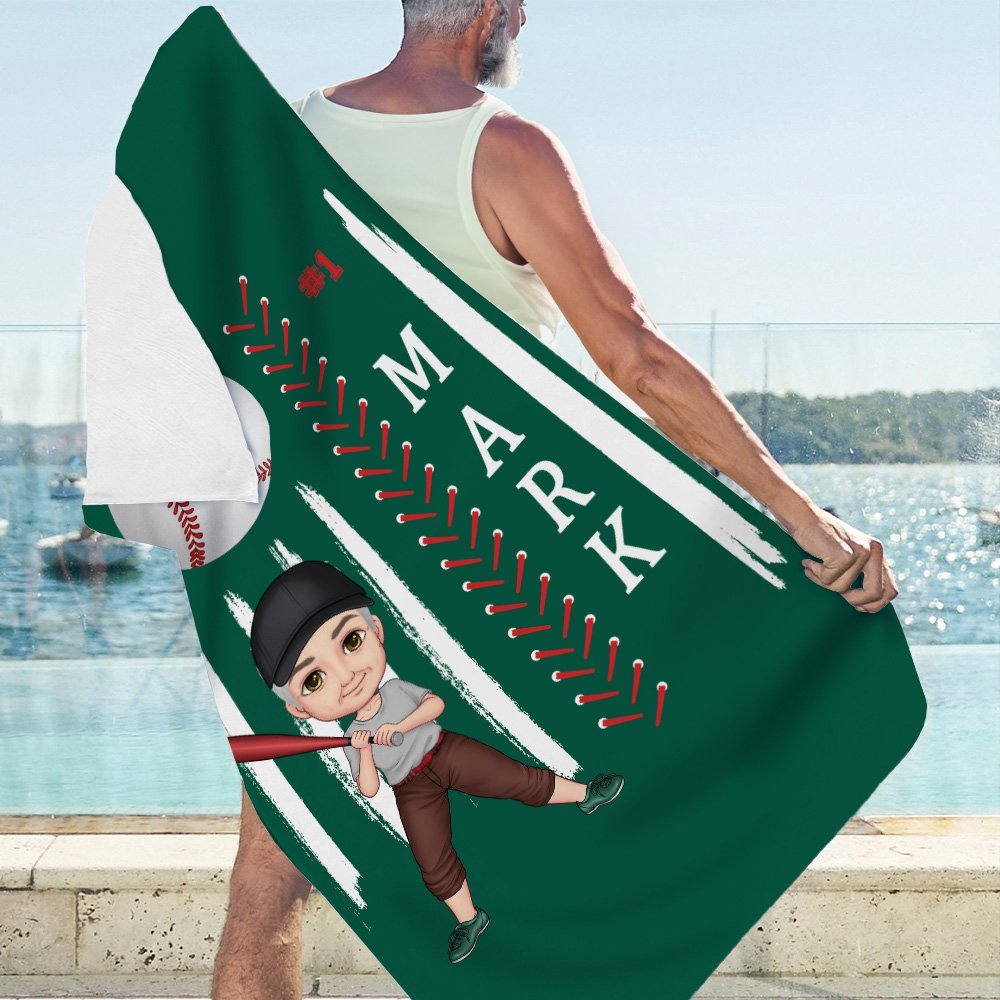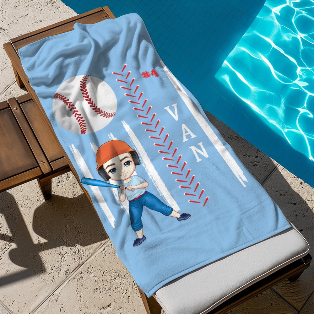 Vår strandhandduk sticker ut med sin unika design med seriefigurer och baseball-tema. Du kan fritt anpassa den tecknade karaktärens ålder, kön, kläder etc. Dessutom kan du lägga till ditt namn och nummer för att visa upp din distinkta personliga stil.