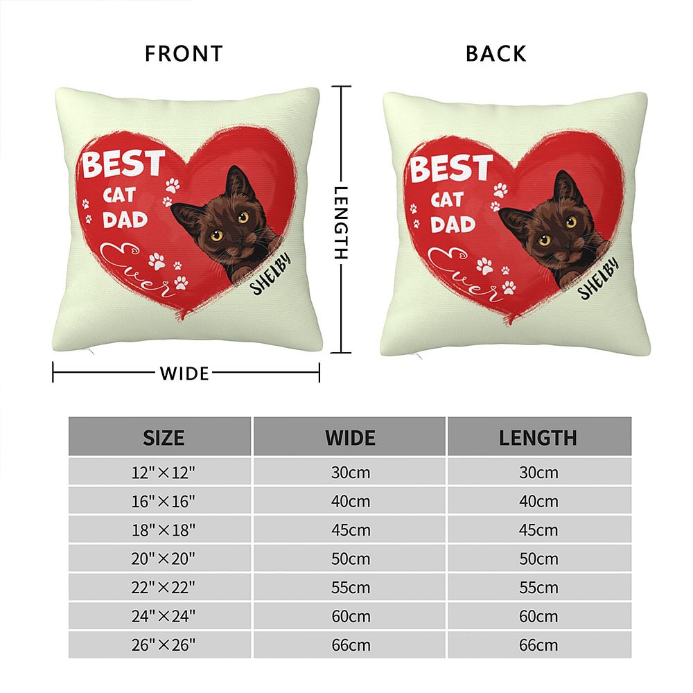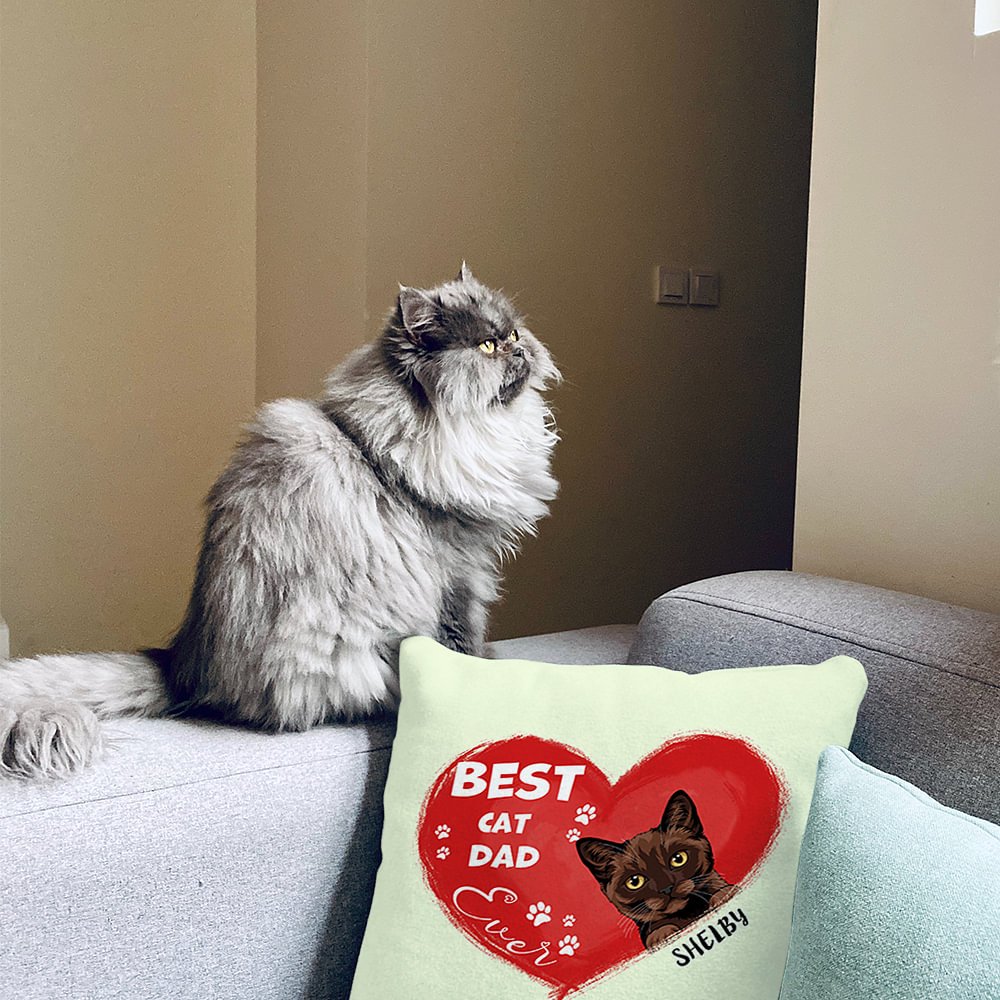 This throw pillow cover is the perfect gift for any pet lover. With its red heart-shaped design, and the phrase "Best Cat Dad Ever," it is a unique and personalized product. You can customize 1-3 pet breeds and names, which allows you to express your love for your furry friends in a special visible way.