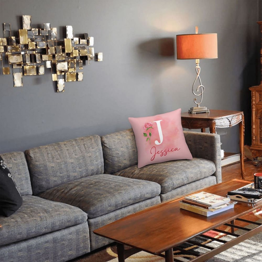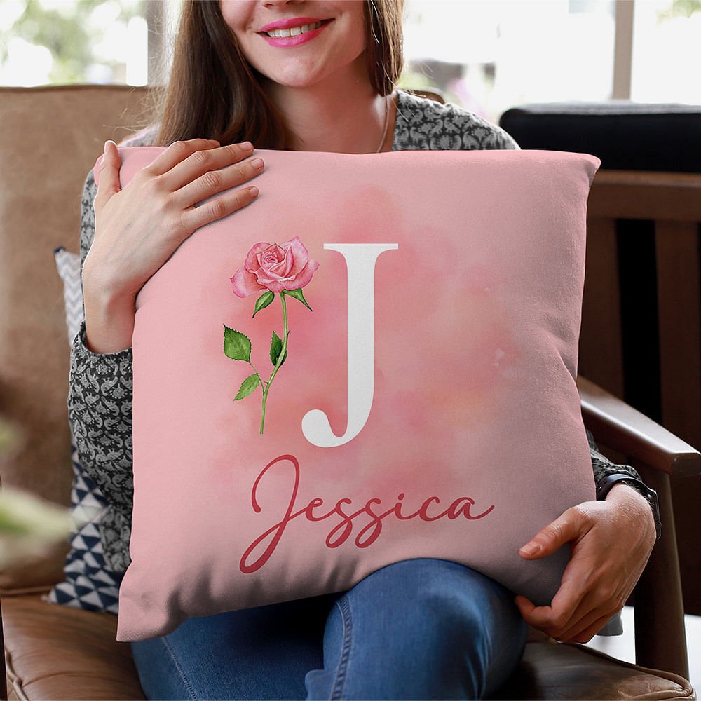 Detta personliga kuddfodral har ett blommönster som representerar din födelsemånad, med ett anpassningsbart namn och en initial. Det är en heminredning och en skräddarsydd gåva som bär djupa välsignelser.