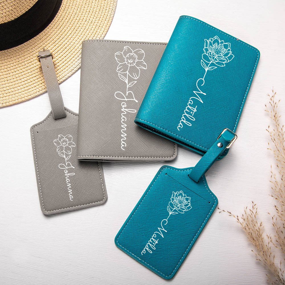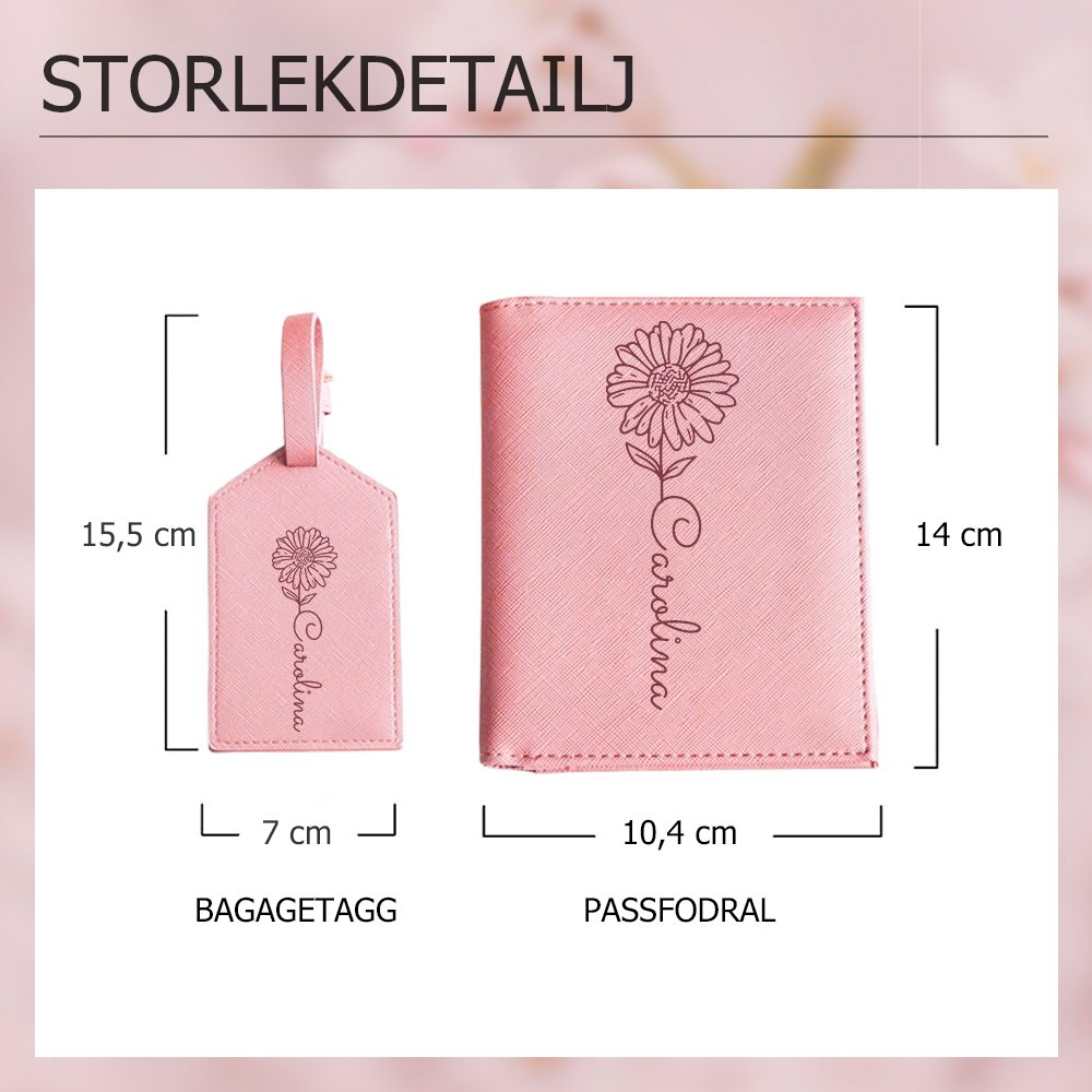 Passfodralet och bagagetaggen kan anpassas med din födelseblomma och ditt namn, vilket gör dem helt unika och personliga. Stick ut från mängden och säkerställ att dina tillhörigheter enkelt kan identifieras med dessa skräddarsydda reseförnödenheter.