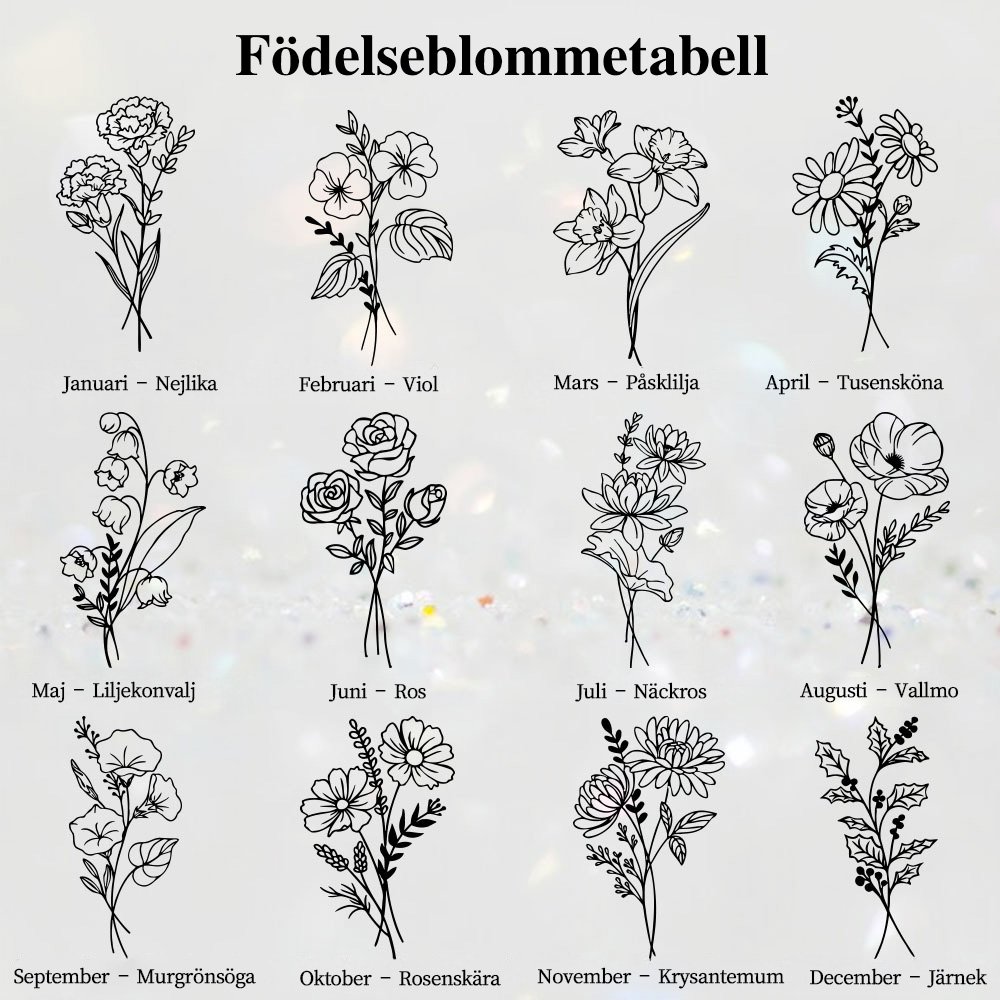 Medaljongen pryds av en födelseblomma som representerar din älskades unika födelsemånad. Gravyren med namnet ger en personlig touch och gör det till en unik gåva som hyllar individens personlighet.