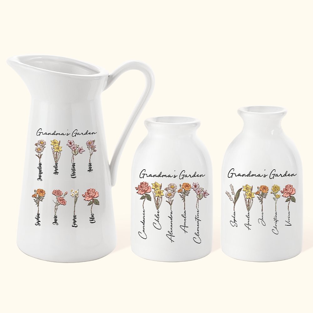 Our exquisite birth flower ceramic vase is a unique and heartfelt Mother's Day gift. The vase is printed with vintage-style birth flowers, and you can customize 1-20 birth flowers and the corresponding names of each family member to express your gratitude to your mother or grandmother.