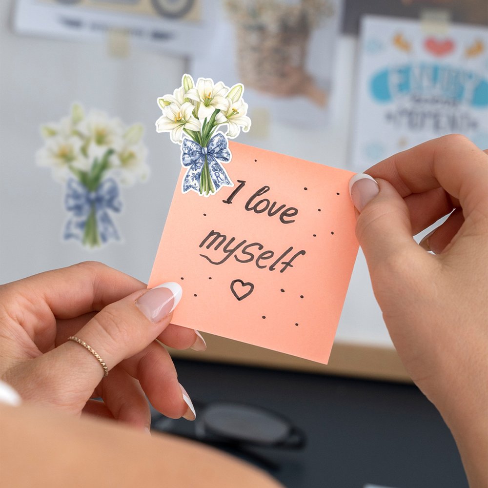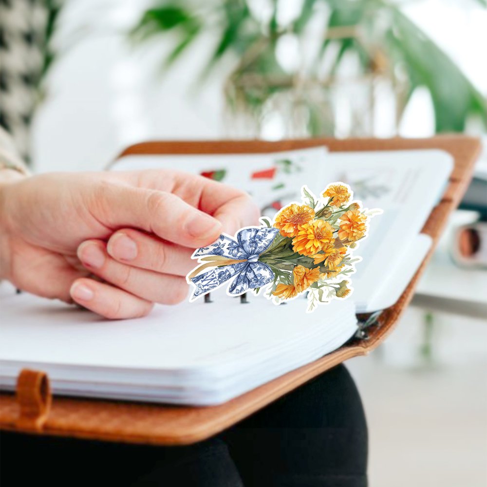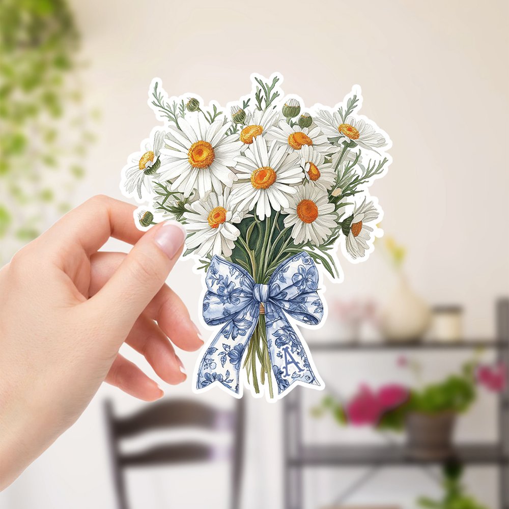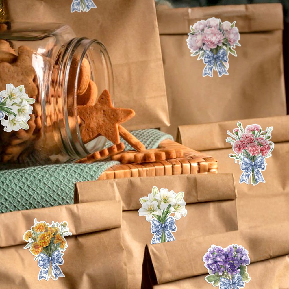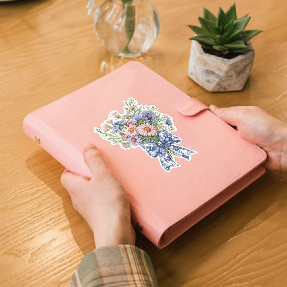 Klistermärket har en utsökt blomsterbukett som det centrala designelementet, accentuerat av en blå tryckt rosett. Bågen kan också anpassas med dina initialer, vilket bryter monotonin hos vanliga dekorativa klistermärken. Dessa klistermärken finns i 17 olika bukettstilar och tre storlekar och tillgodoser de estetiska preferenserna hos dem som uppskattar blommiga element samtidigt som de förmedlar en unik känsla genom anpassad design. Oavsett om de uttrycker personliga preferenser eller fungerar som en speciell minnessak, ger de en känsla av mening och exklusivitet.