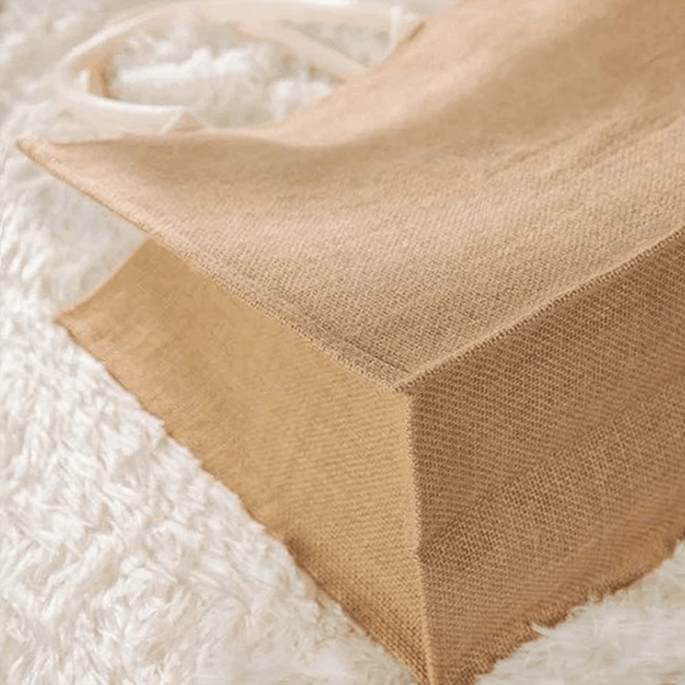 Den är tillverkad av förstklassiga material och minskar behovet av pappers- och plastpåsar, vilket bidrar till en miljövänlig livsstil. Juteväv har hög draghållfasthet och låg töjning, vilket ger utmärkt stöd och hållbarhet - perfekt för långvarig användning, för att bära presenter och dagliga föremål utan att rivas eller deformeras.