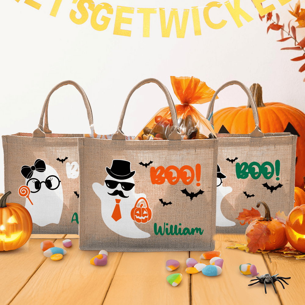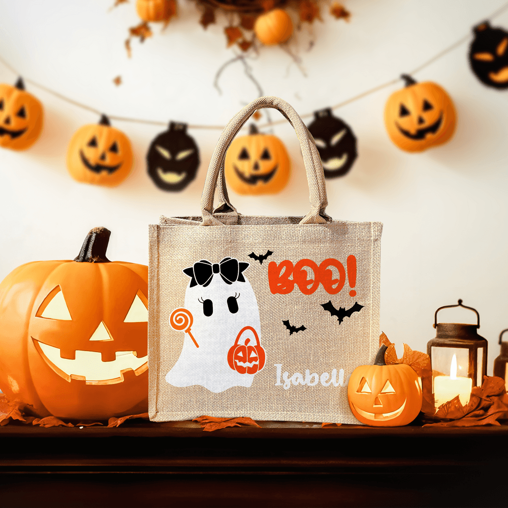 Väskan har Halloween-spökmotiv och utstrålar en kuslig men ändå bedårande festlig atmosfär. Med ditt namn förvandlas den till ett unikt "semesteremblem" som omedelbart lyser upp Halloweenfester, bus eller godis och andra tillfällen och visar upp din unika stil.