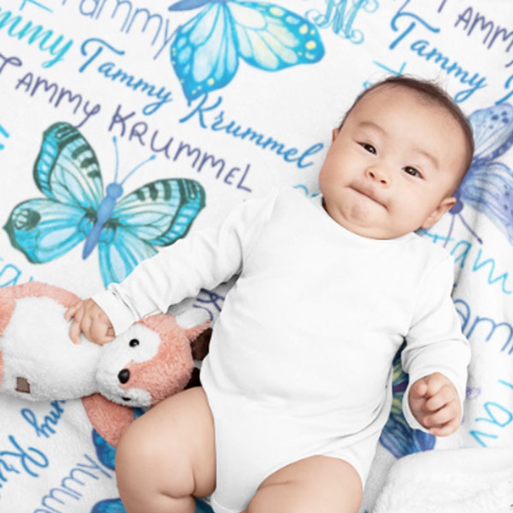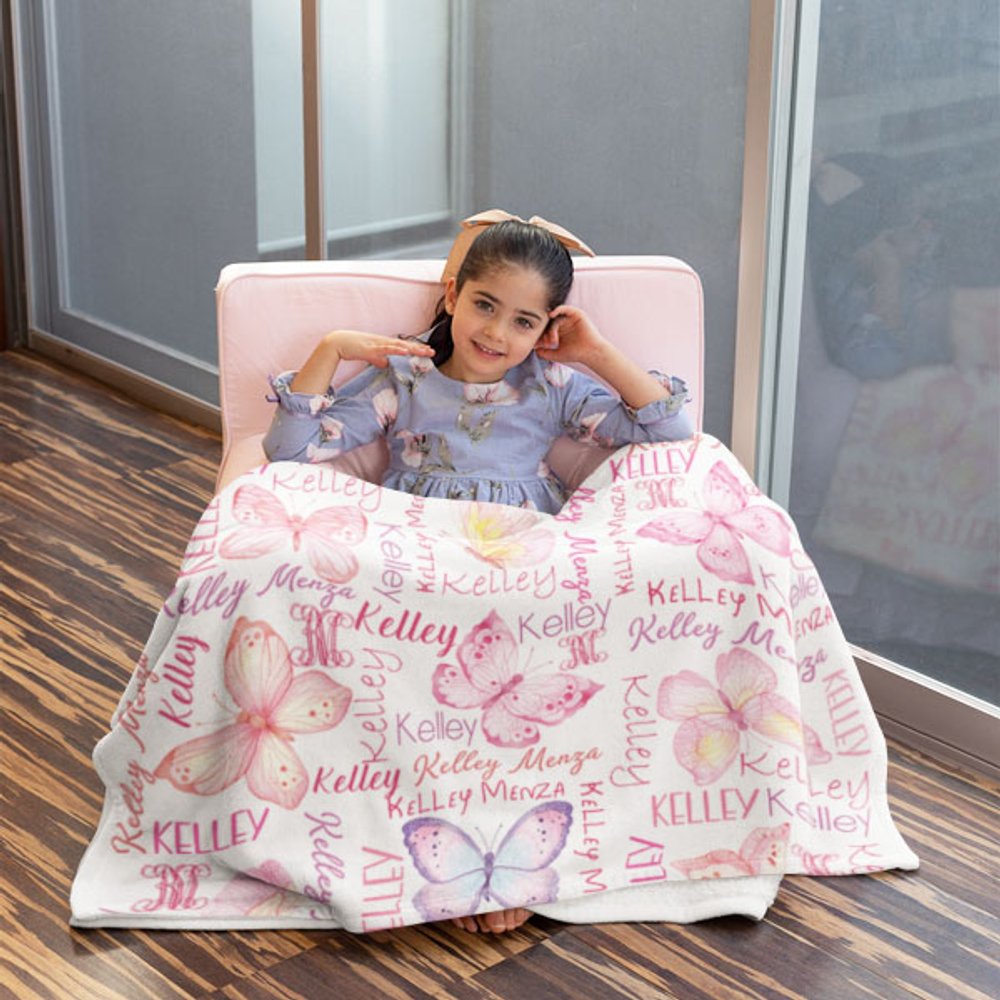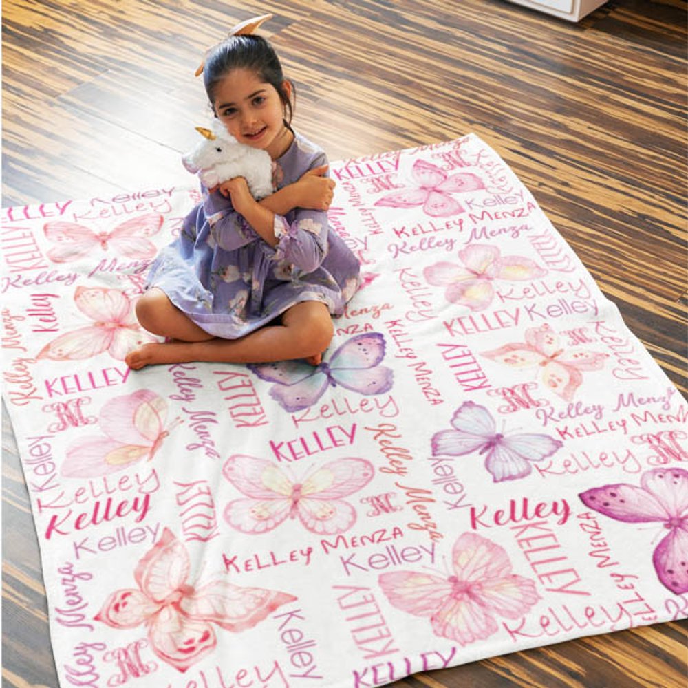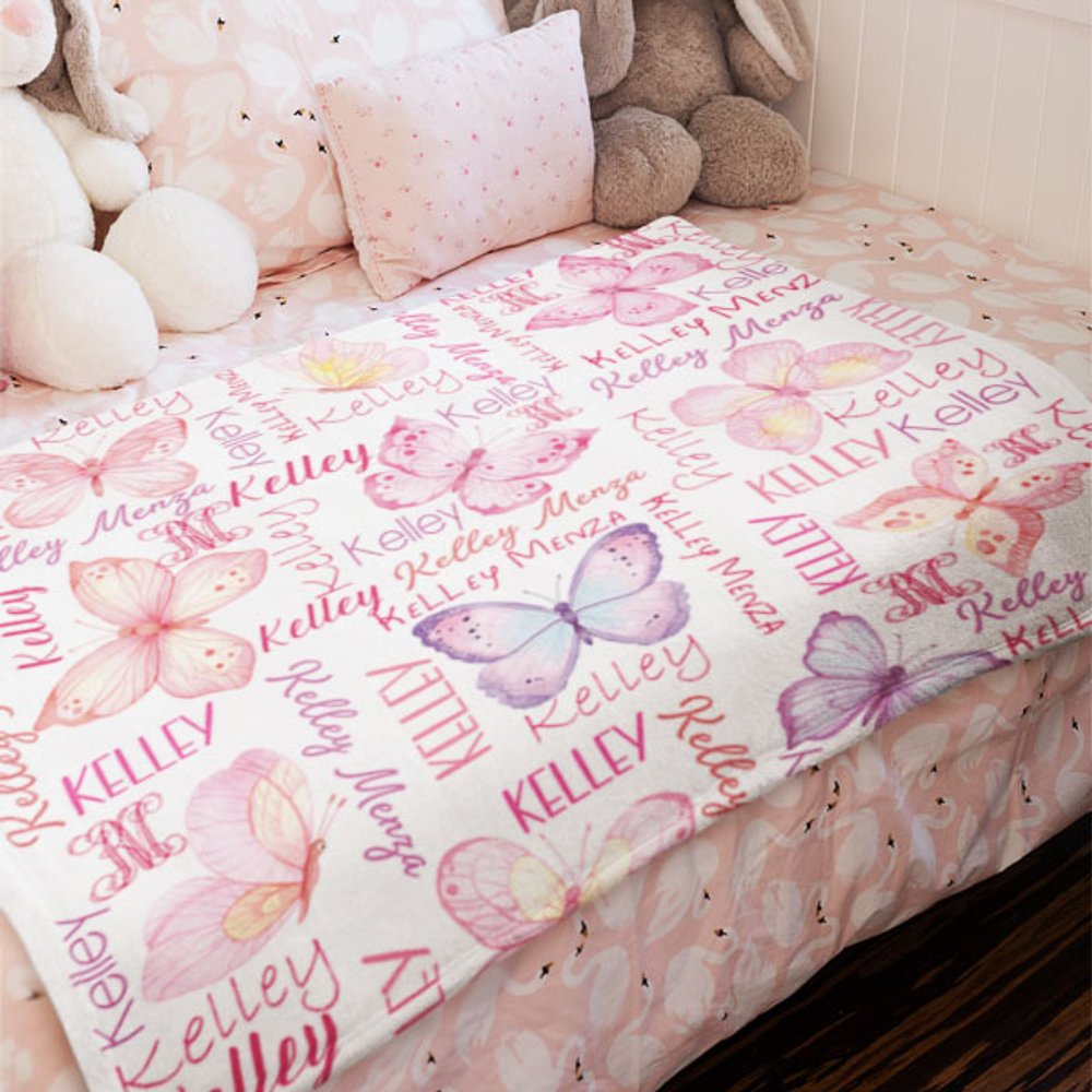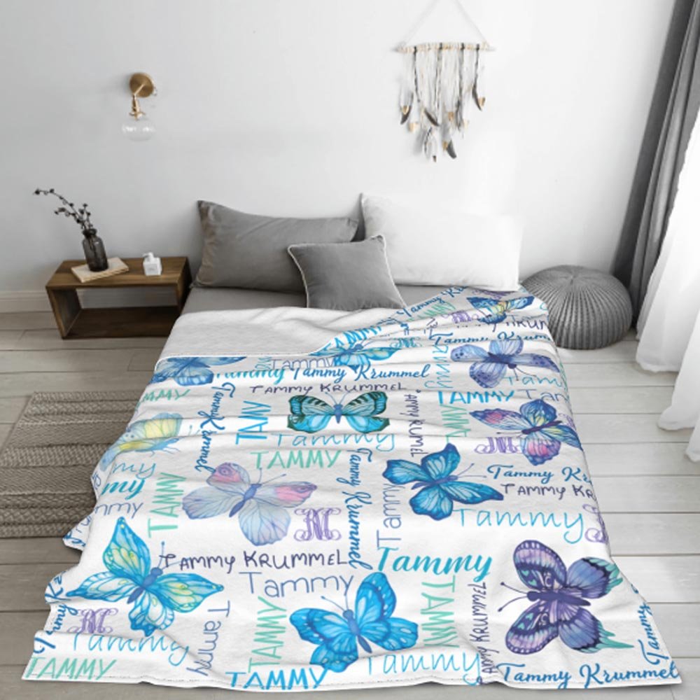 Personlig akvarell fjärilar Anti Pilling Fleece filt med namn Färgglada heminredning Födelsedagspresent till henne
