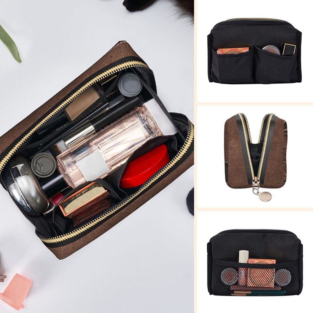 Denna kosmetikaväska är designad för den moderna, upptagna kvinnan. Med sin stora förvaringskapacitet och strategiskt placerade fack kan du organisera din makeup eller dina toalettartiklar på kort tid. Det som gör den speciell är dess smarta inbyggda svampskydd, en funktion som inte bara håller dina föremål säkra utan också förhindrar eventuella spill eller läckage, vilket säkerställer att dina värdesaker förblir säkra och intakta.