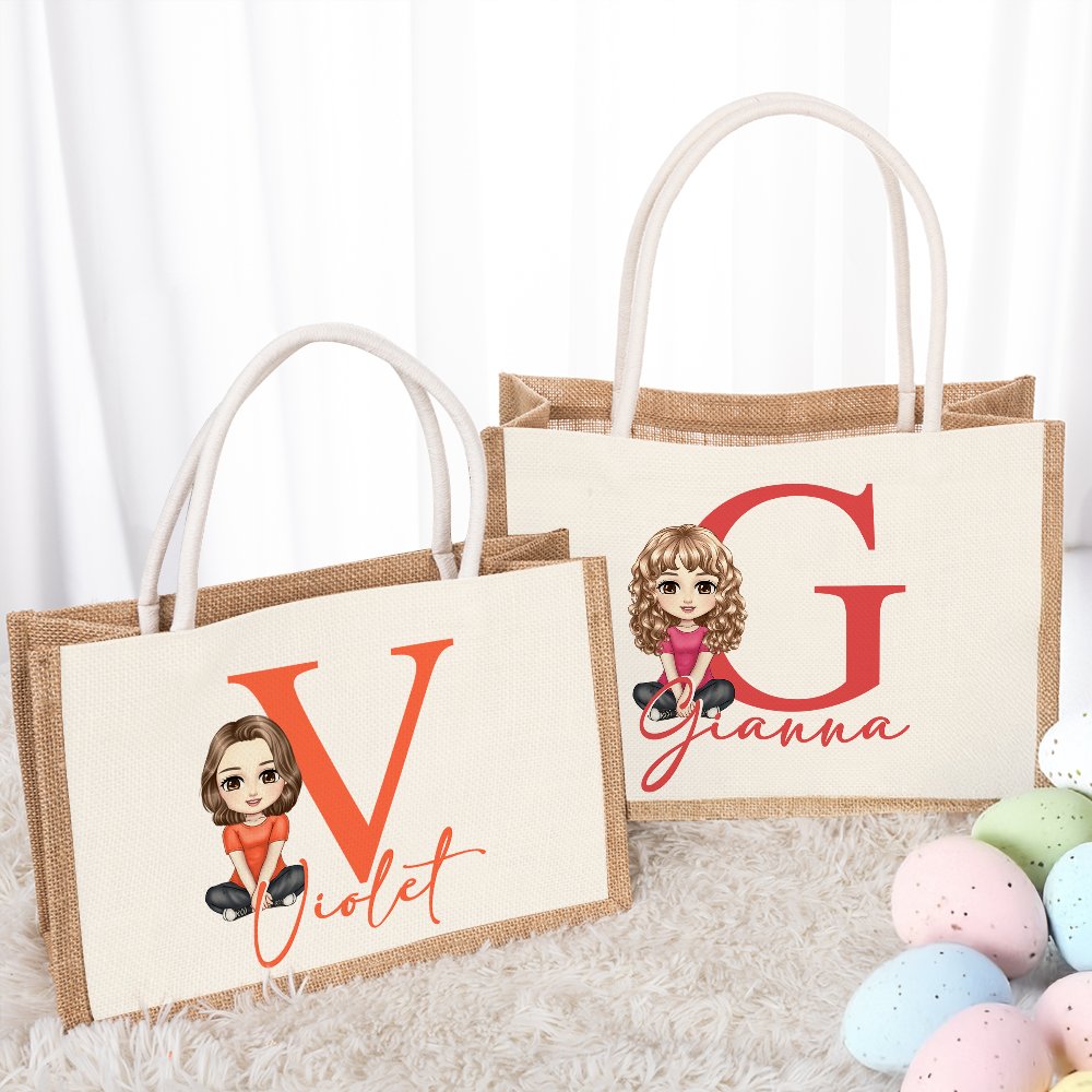 Vår personliga tygväska har ett anpassat namn och initial, en anpassningsbar tecknad karaktär från pojkar, flickor, män, kvinnor, baby pojkar till baby flickor, vilket gör det till en härlig gåva för både barn och vuxna.