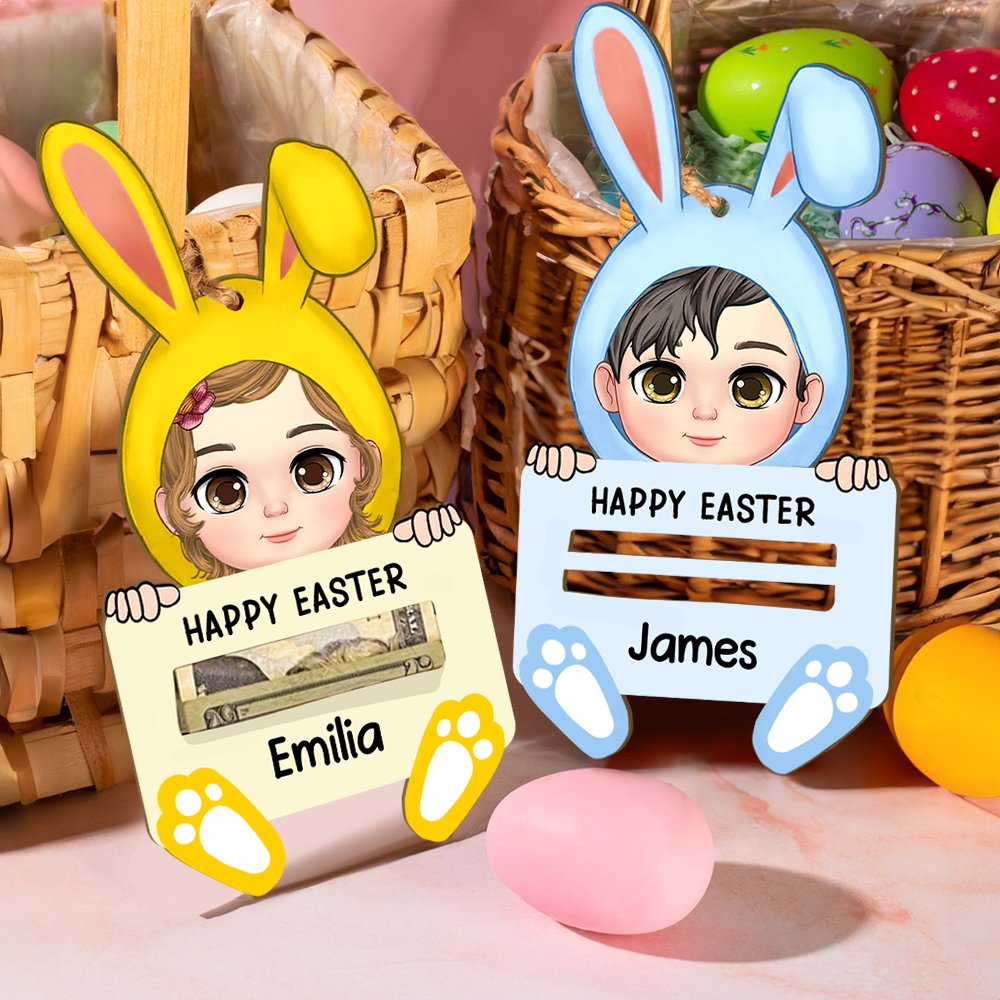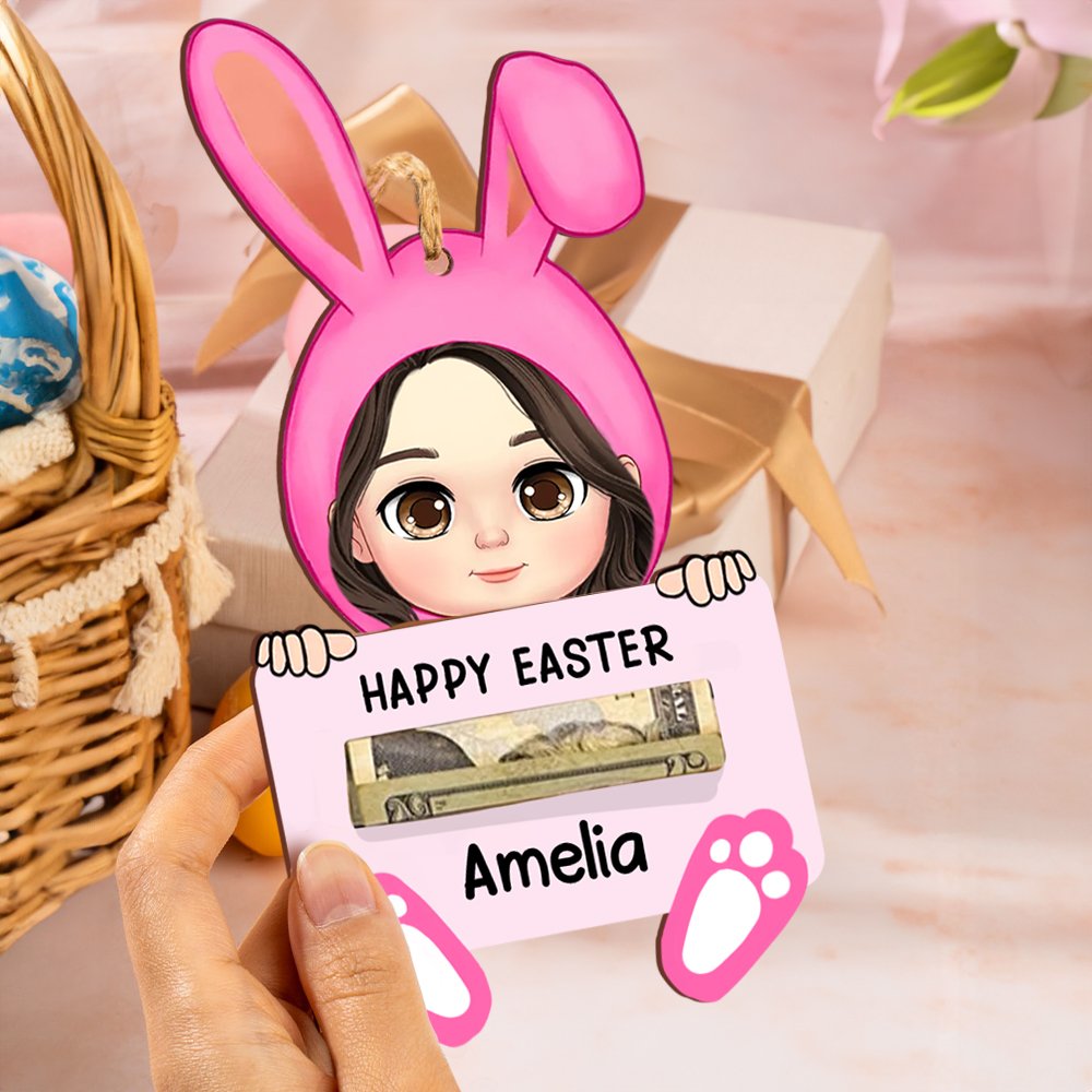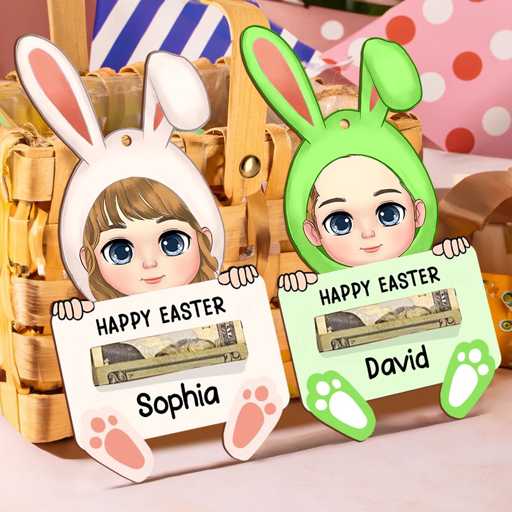 Den här pengahållaren har en tecknad kanin och är perfekt för att fira påskens glädje. Du kan välja mellan nio olika färger på kaninhattarna och nio olika namnplattor. Varje pengahållare kan graveras med ett namn, vilket gör den till en omtänksam och unik present till vänner och familj i påsk.