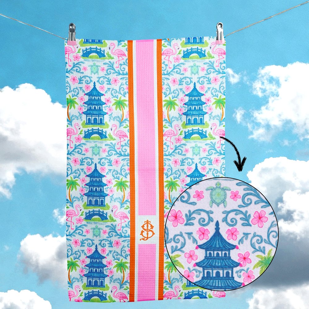 Smyck ditt kök med vår utsökta våffelhandduk med en delikat pagodillustration som hyllar klassisk österländsk estetik. Detta konstnärliga föremål erbjuder personlig elegans med initialer, vilket förvandlar ett praktiskt föremål till ett anpassat konstverk. Den sofistikerade våffelstrukturen förbättrar inte bara funktionaliteten utan ger också en dimensionell skönhet till den traditionella designen.
