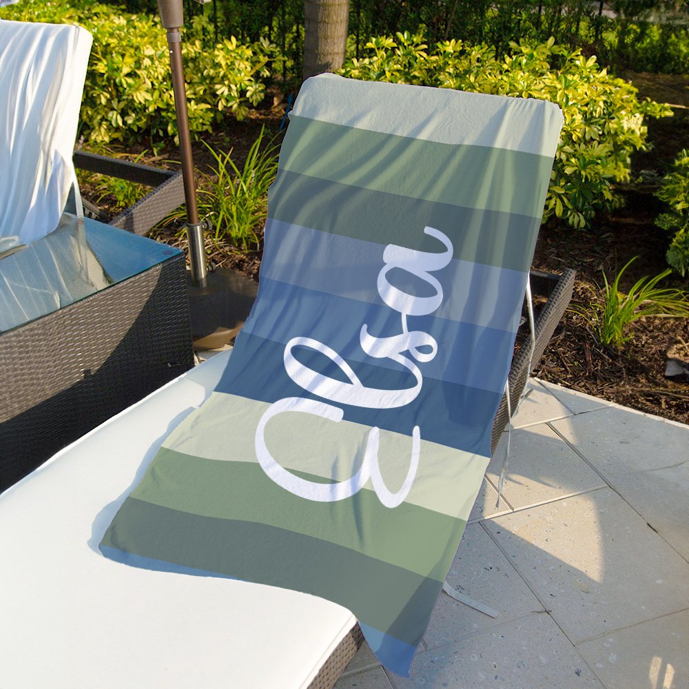 Denna färgglada klassiska randiga strandhandduk gör din strandresa unik. Anpassningsbar namndesign gör att du kan sticka ut från mängden och njuta av sommarens entusiasm. Svep in dig i lyxig stil och skapa din egen bästa sommarlook!
