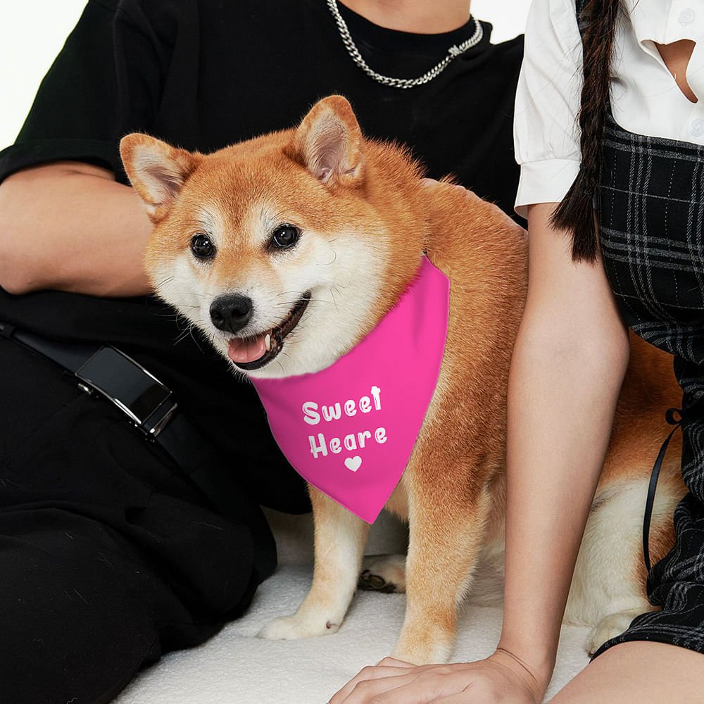 This charming bandana is designed with vibrant and eye-catching colors, perfect for adding a pop of color and style to your furry friend’s wardrobe. You can also personalize texts in it, such as your pet’s name or holiday blessings. Let your pet strut their stuff in this fashionable accessory that will surely make heads turn at the park or on Valentine’s Day!