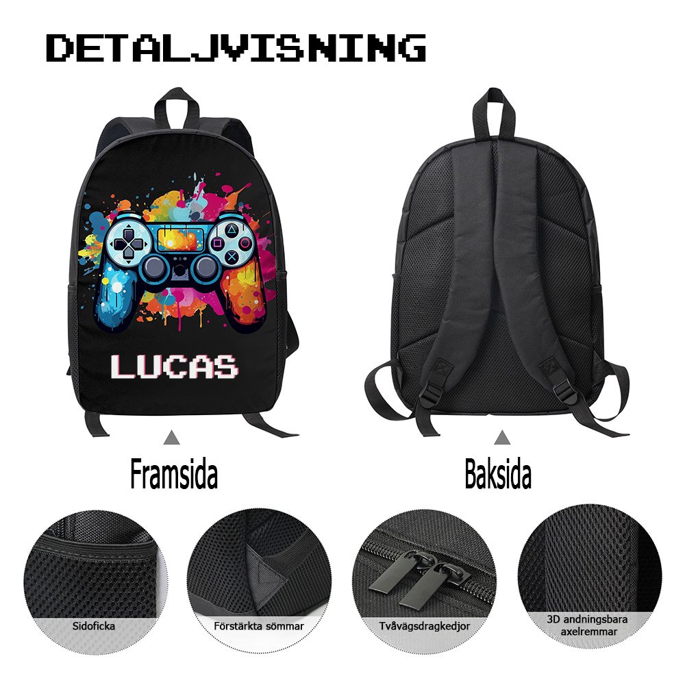 Den här personliga ryggsäcken är en utmärkt present till barn, studenter eller alla som älskar spelkultur. Den passar perfekt som födelsedagspresent, julklapp eller för att fira skolstart.