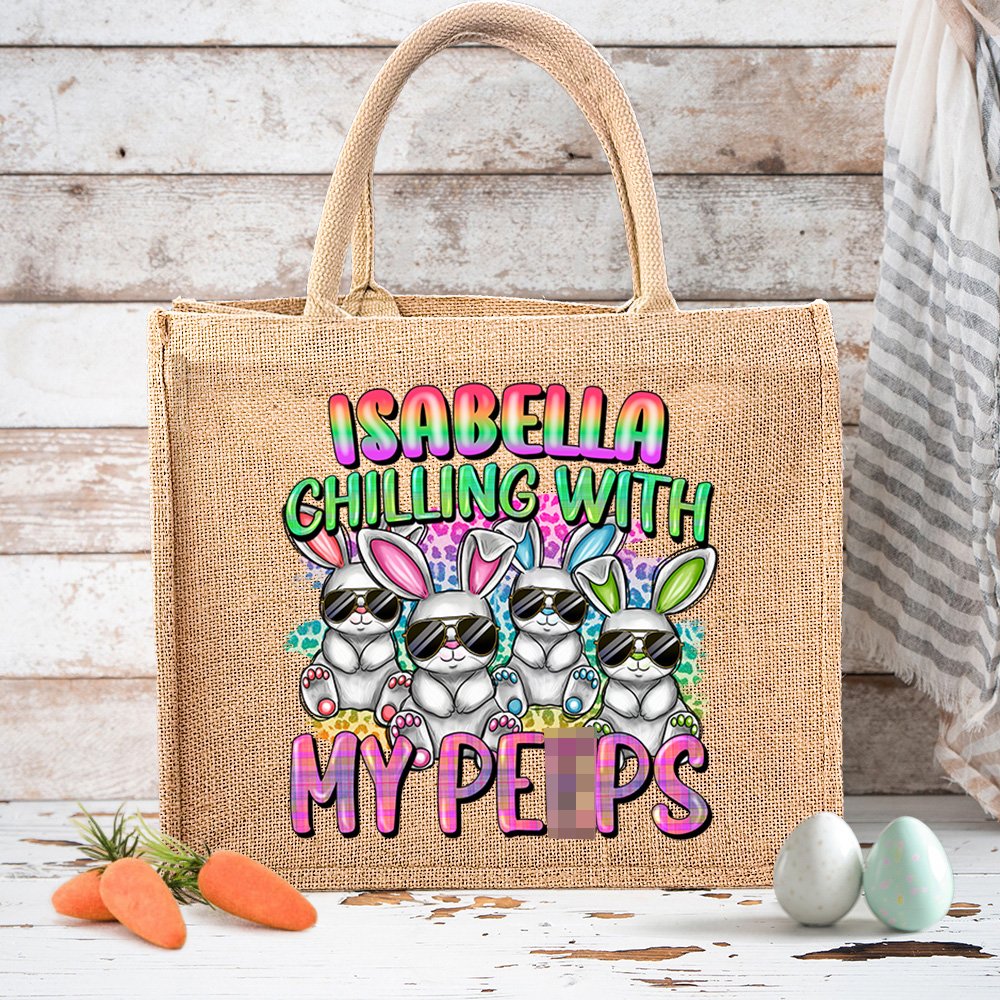 The burlap tote bag is specially designed for Easter with a cute and cool bunny design. You can also personalize your name using different font colors. This is the perfect gift for family and friends to add a touch of cuteness and Easter cheer to their day.