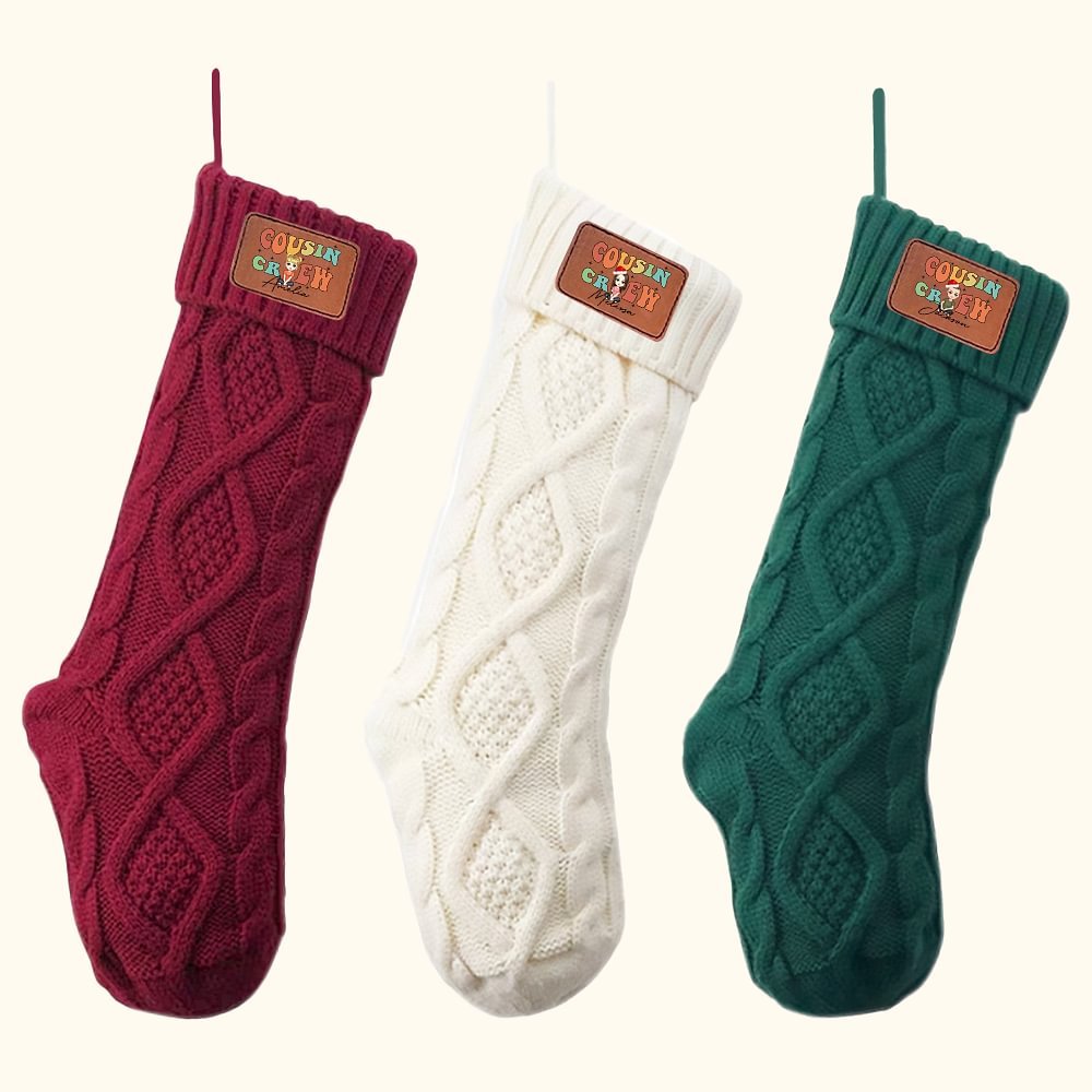 Våra julstrumpor är 100% akryl; det mjuka tyget är elastiskt och rymmer fler presenter. Det vridna stickmönstret gör strumporna vackra, vilket ger dig en varm känsla och skapar fantastiska semesterminnen.