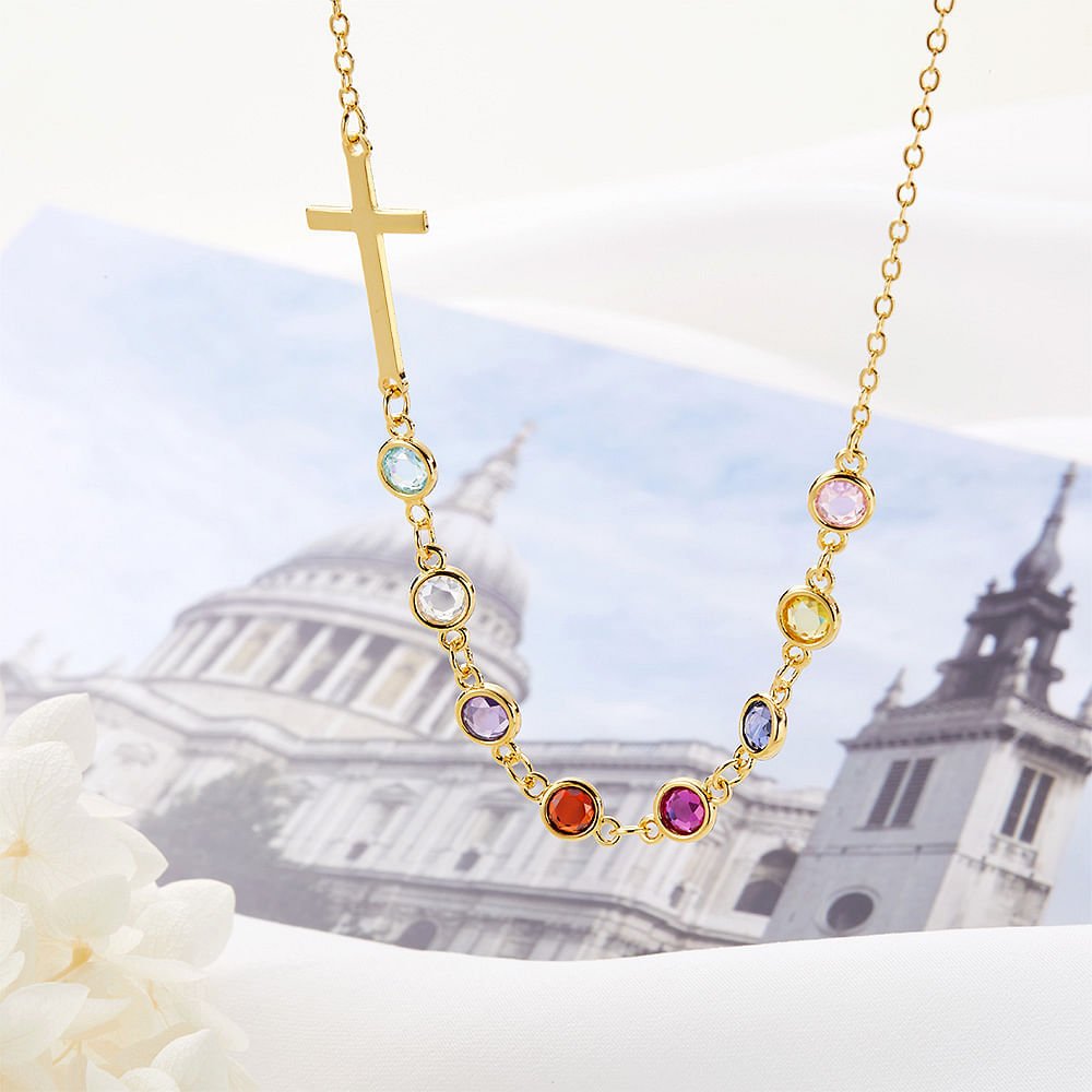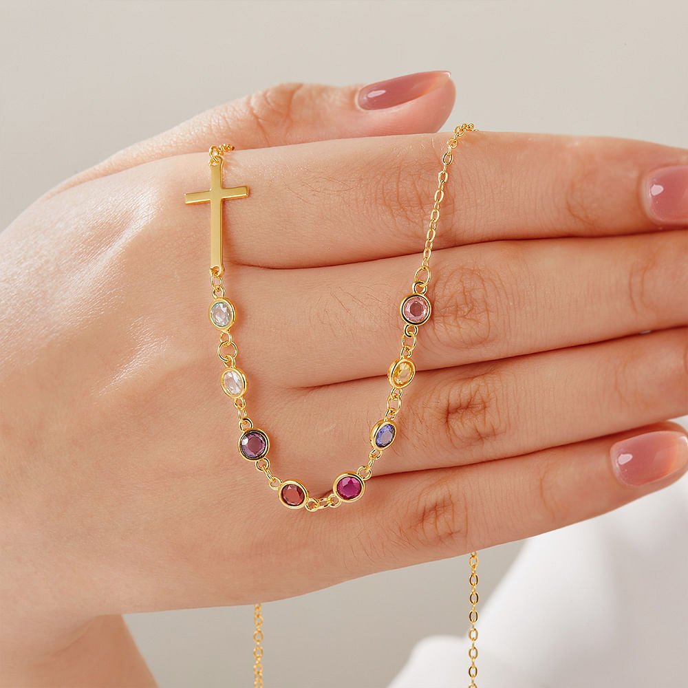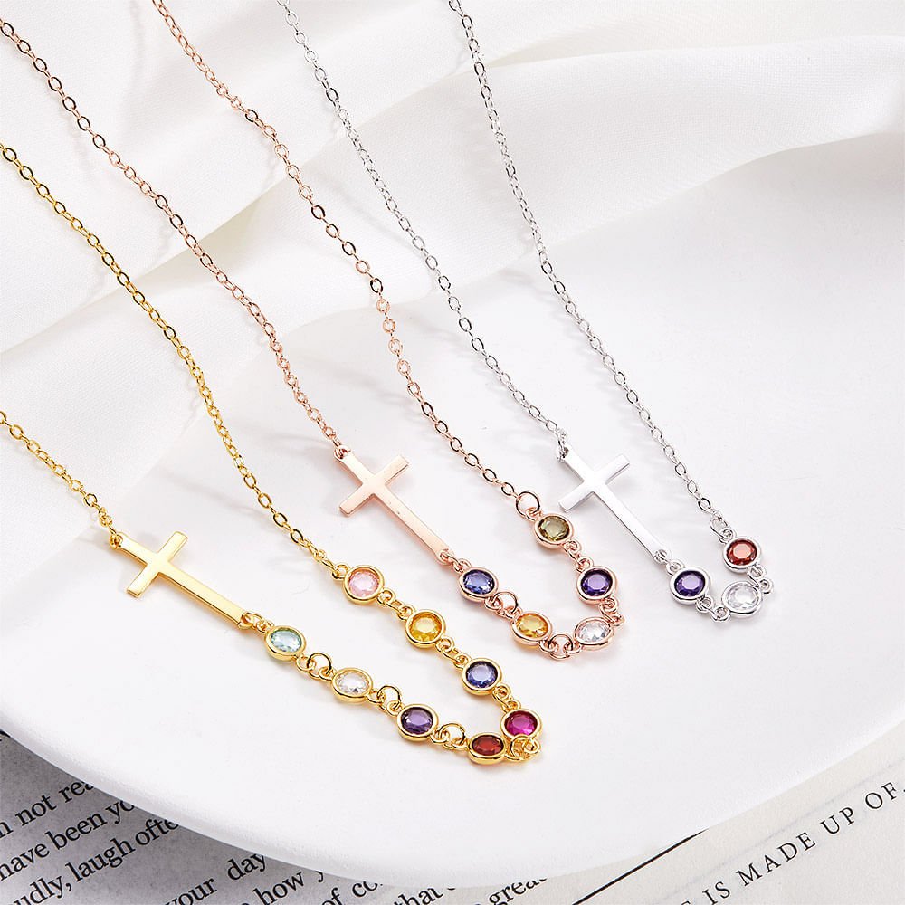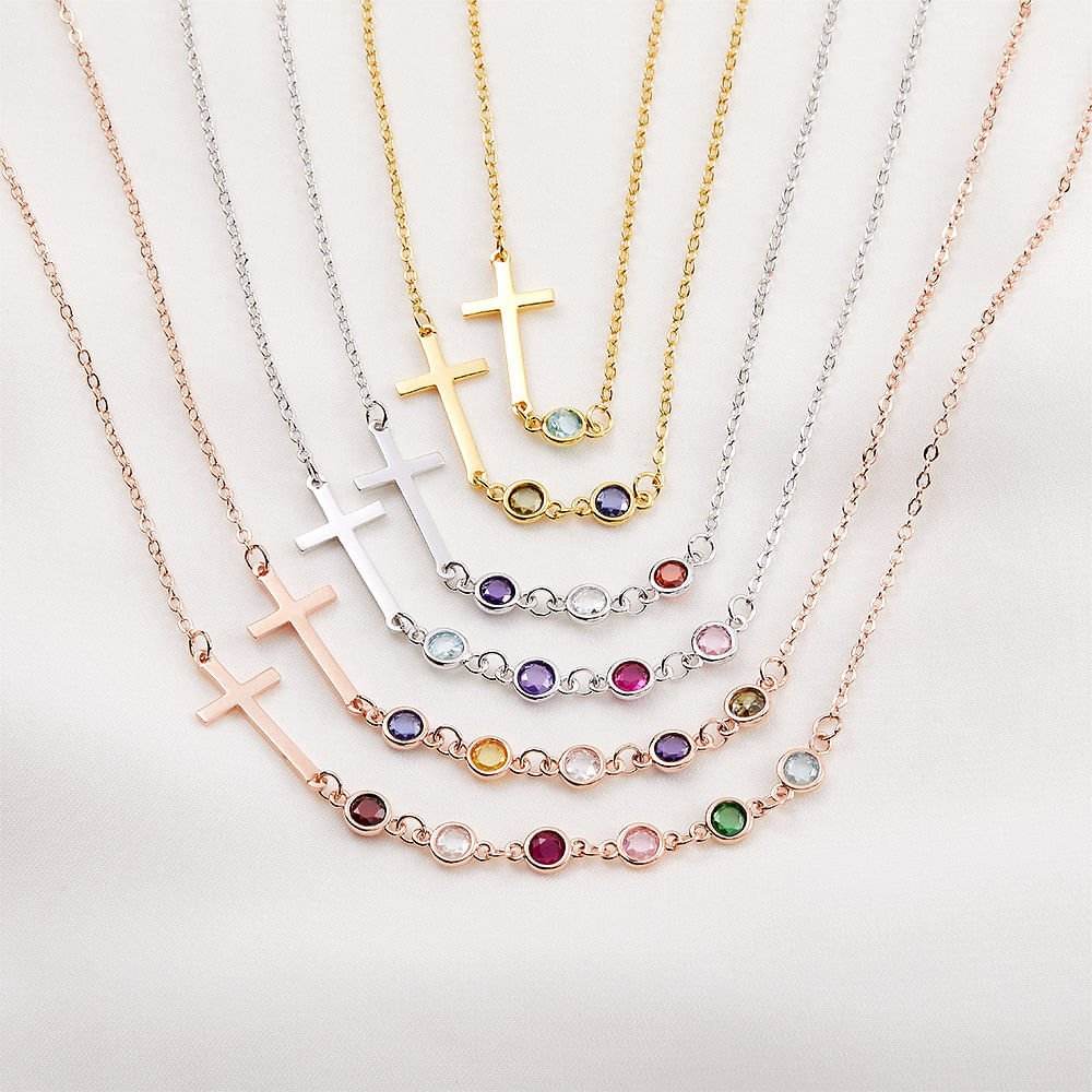 Personligt kors med flera 1-10 födelsestenar Familjehalsband Födelsedag Mors dag-present för kvinnor
