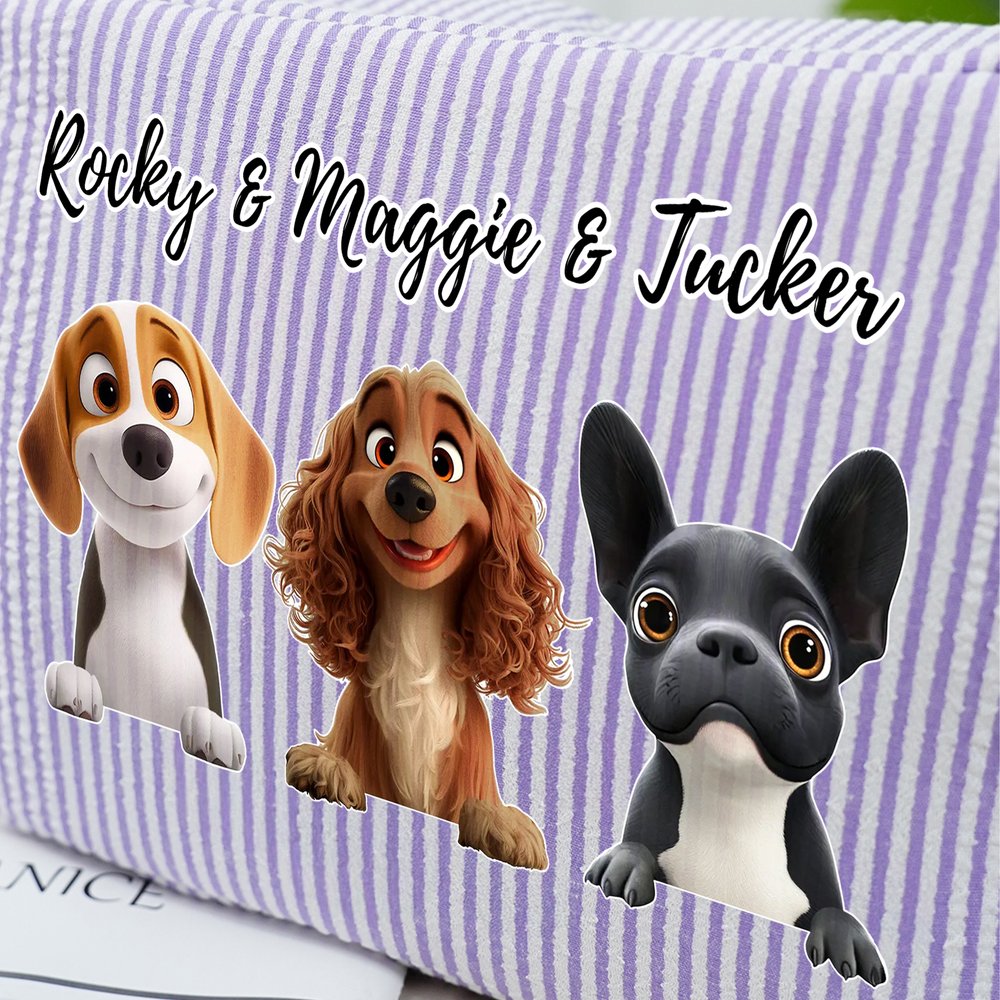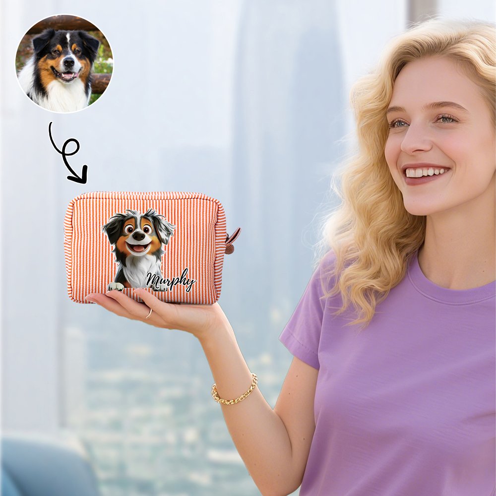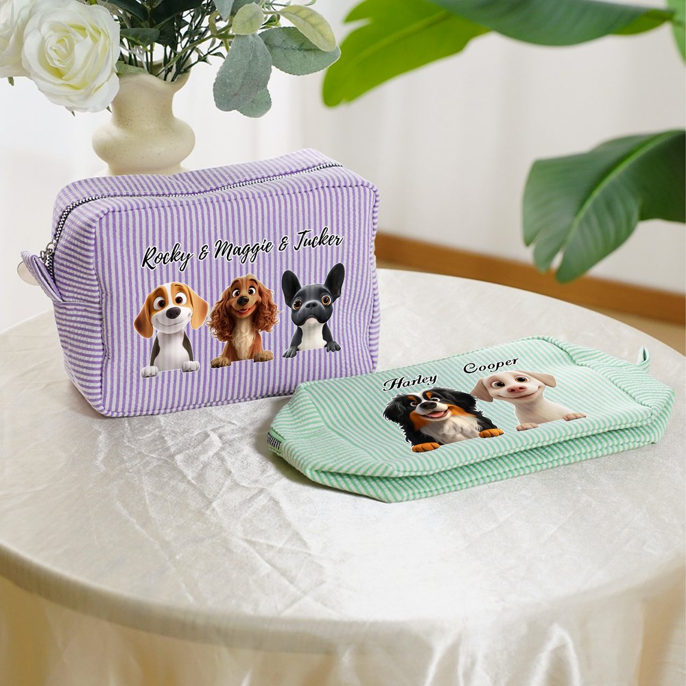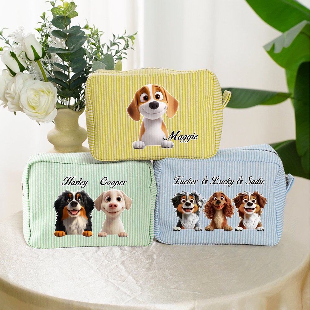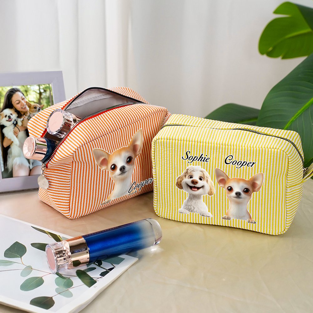 Denna sminkväska har 1-3 tecknade 3D-hundar som sitt centrala element. Dess bedårande och livfulla design, som kan anpassas med ett namn, förstärker inte bara din personlighet utan fördjupar också din känslomässiga koppling till djurälskare. Varje användning framkallar fina minnen av ditt husdjur och förvandlar den från ett rent förvaringsverktyg till ett hjärtvärmande föremål som förkroppsligar ditt husdjurs sällskap.
