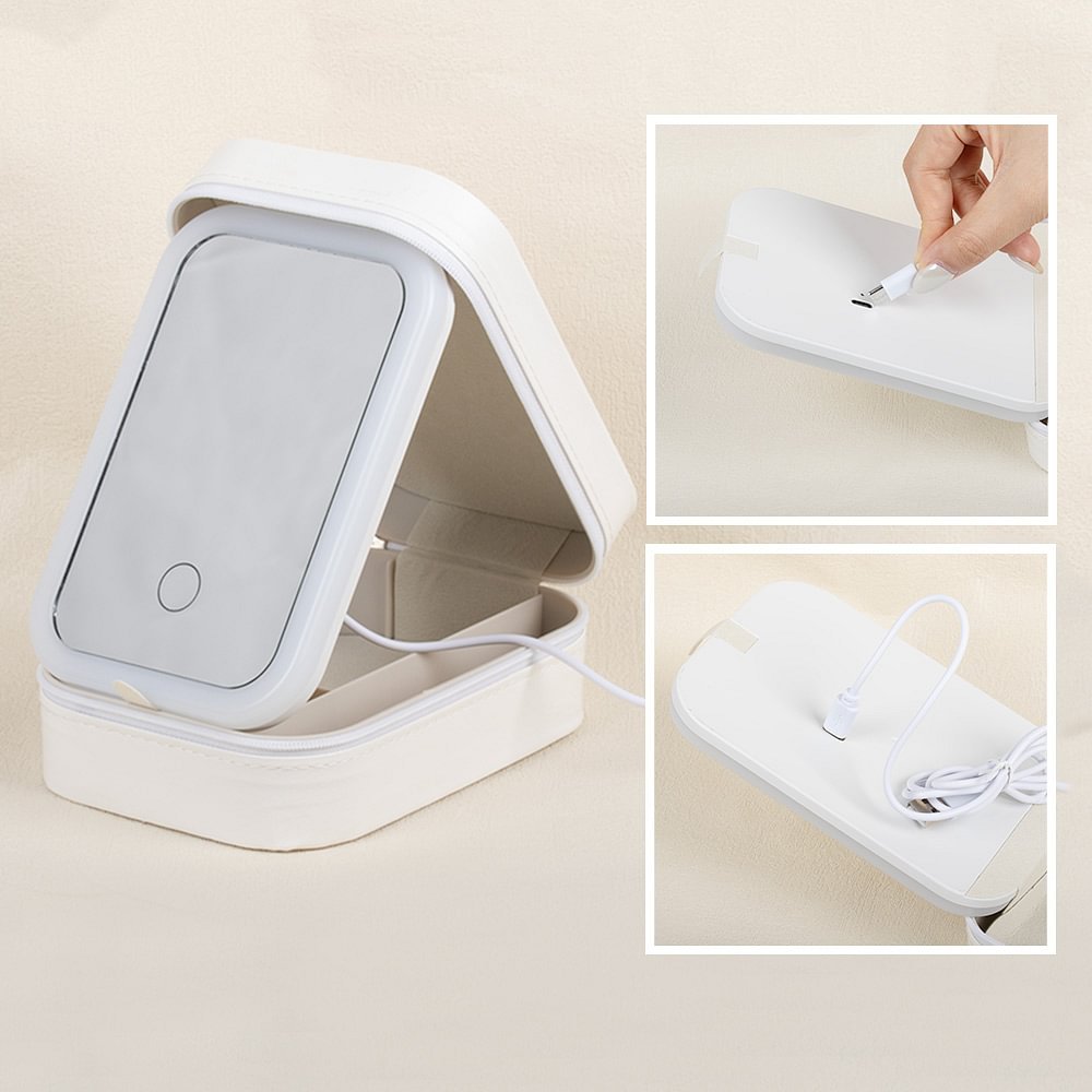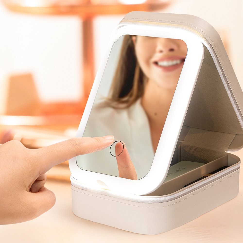 Den är utrustad med en LED-spegel och har tre dimbara inställningar - varmt ljus, naturligt ljus och kallt ljus, som kan användas för att skapa olika atmosfärer. Den levereras med en laddningskabel och kan användas i ungefär en vecka på en enda laddning. Oavsett om du förbereder dig för en resa eller en lugn semester kan du välja det ljus som bäst passar dina behov. Den här praktiska spegeln är perfekt för att applicera och kontrollera din makeup.