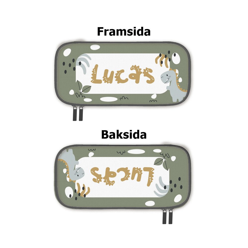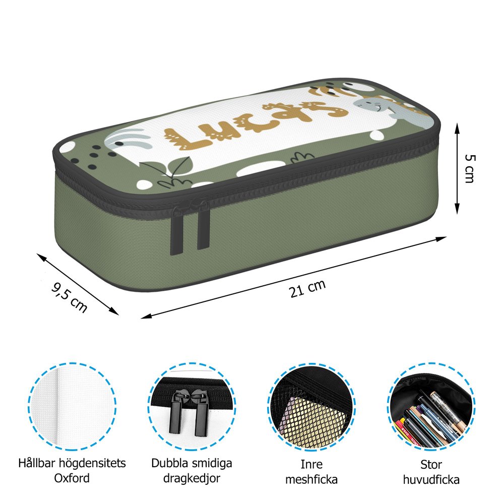 Med en snygg rektangulär design och livfulla dinosaurieelement är detta pennfodral både praktiskt och snyggt. Den personliga namnfunktionen ger en extra speciell touch, vilket gör det till en unik accessoar som barnen kommer att älska att visa upp.