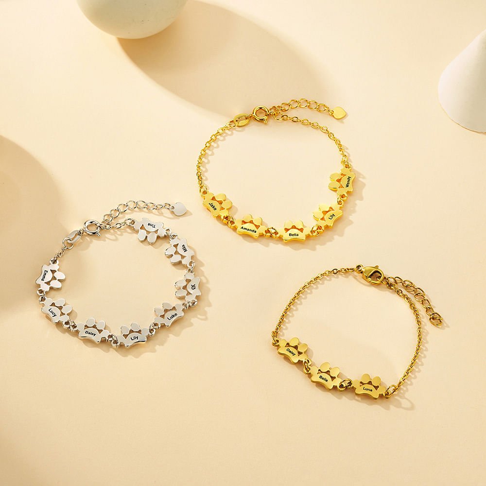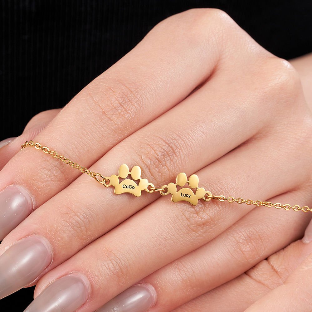 This adorable paw print bracelet perfectly blends personalization and simplicity. You can choose to customize 1-8 paw prints with engraved names, and its delicate style makes it eye-catching and stylish.