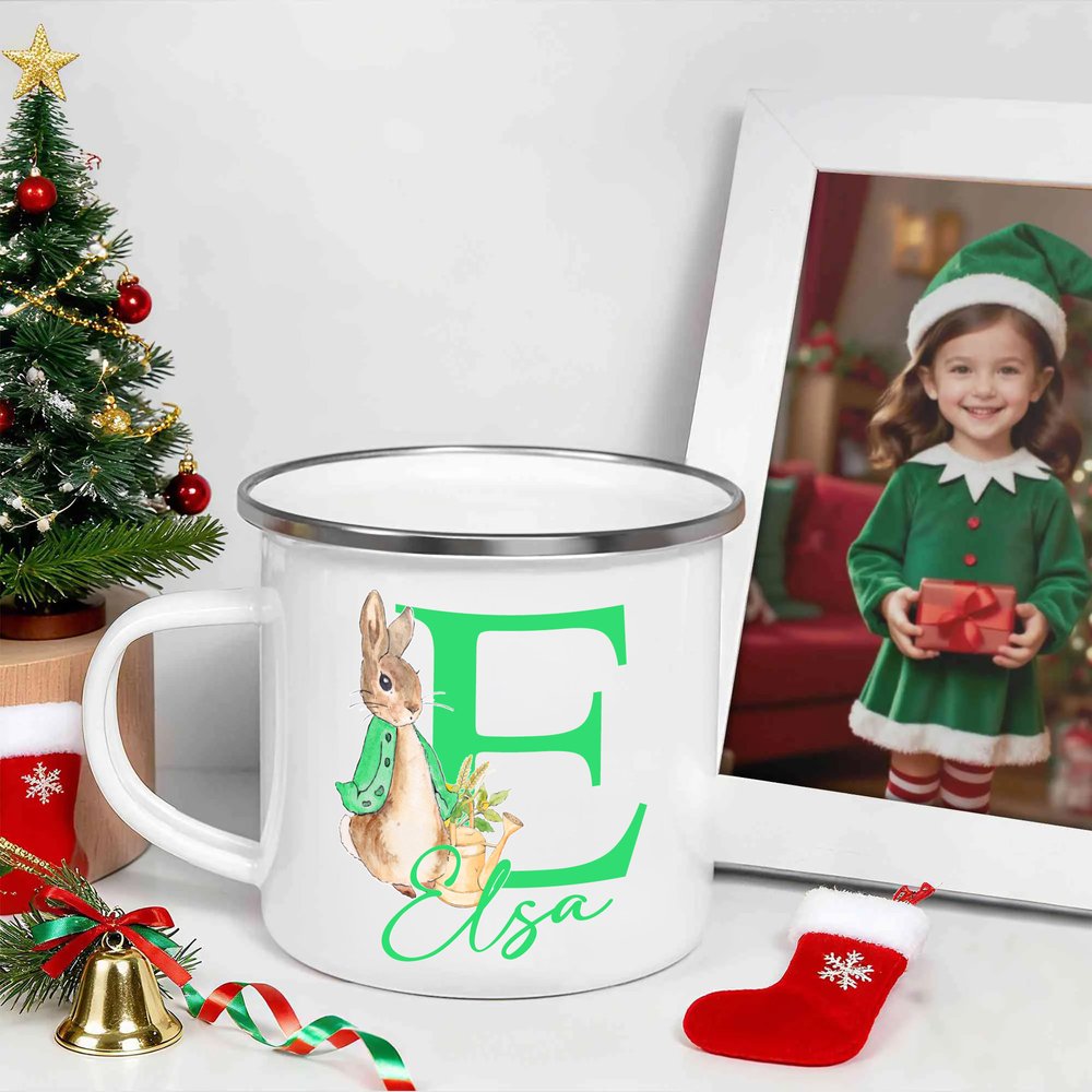Muggen har söta kaninelement som ger en lekfull och glad känsla. Du kan lägga till mottagarens initialer och namn, vilket gör den till en unik present för skolstart eller påsk och ger ditt barn en särskild värme inför den nya terminen.