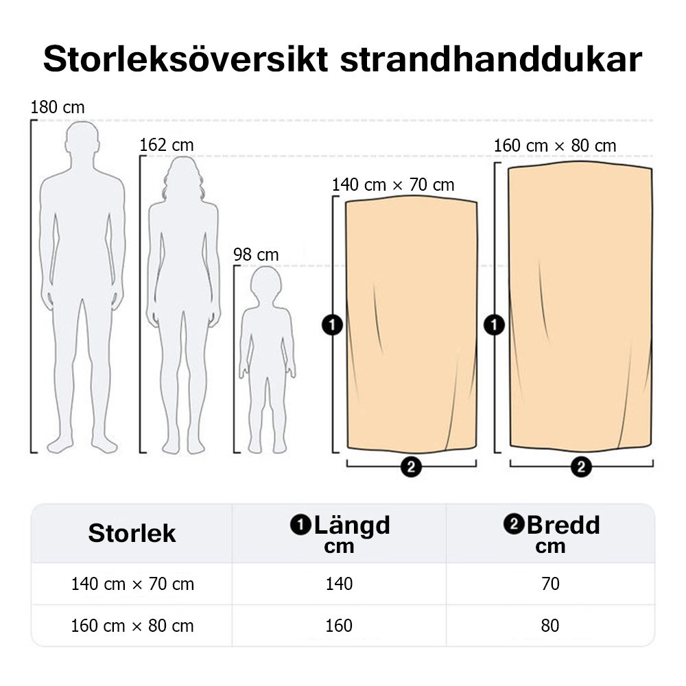 Denna strandhandduk är mycket lämplig för sommarens fritidsplatser som stränder, simbassänger eller vattenparker. Den kan inte bara användas som ett praktiskt verktyg för att torka kroppen efter simning utan också som en kudde eller ett parasoll på stranden, vilket ger dig extra komfort och bekvämlighet.
