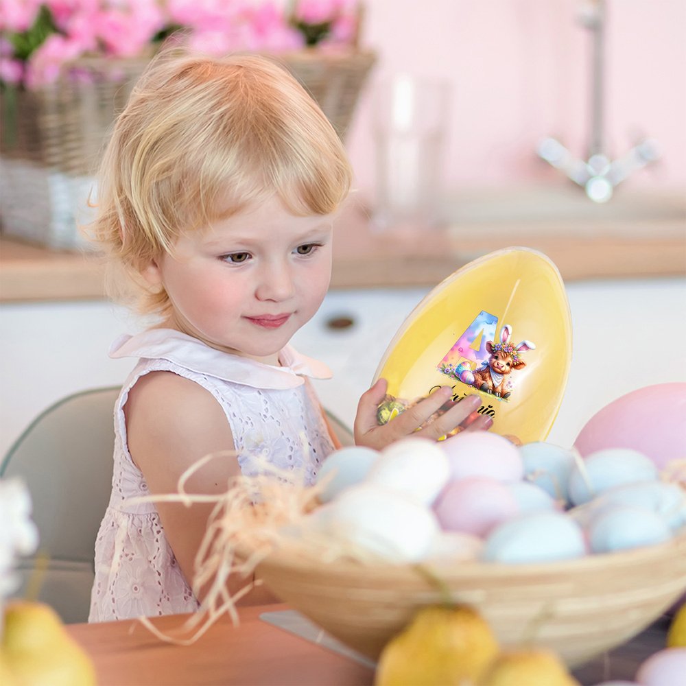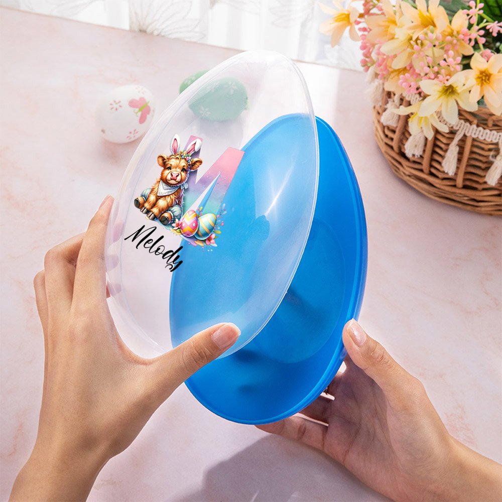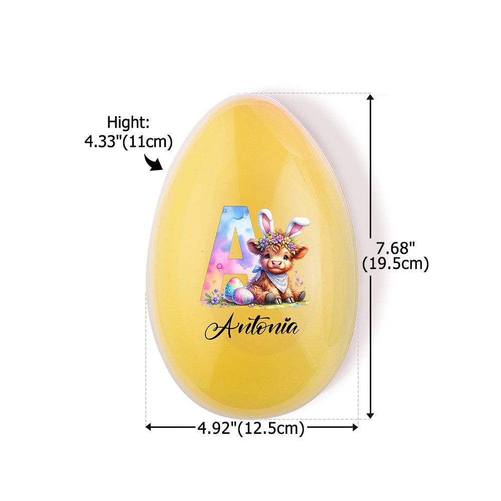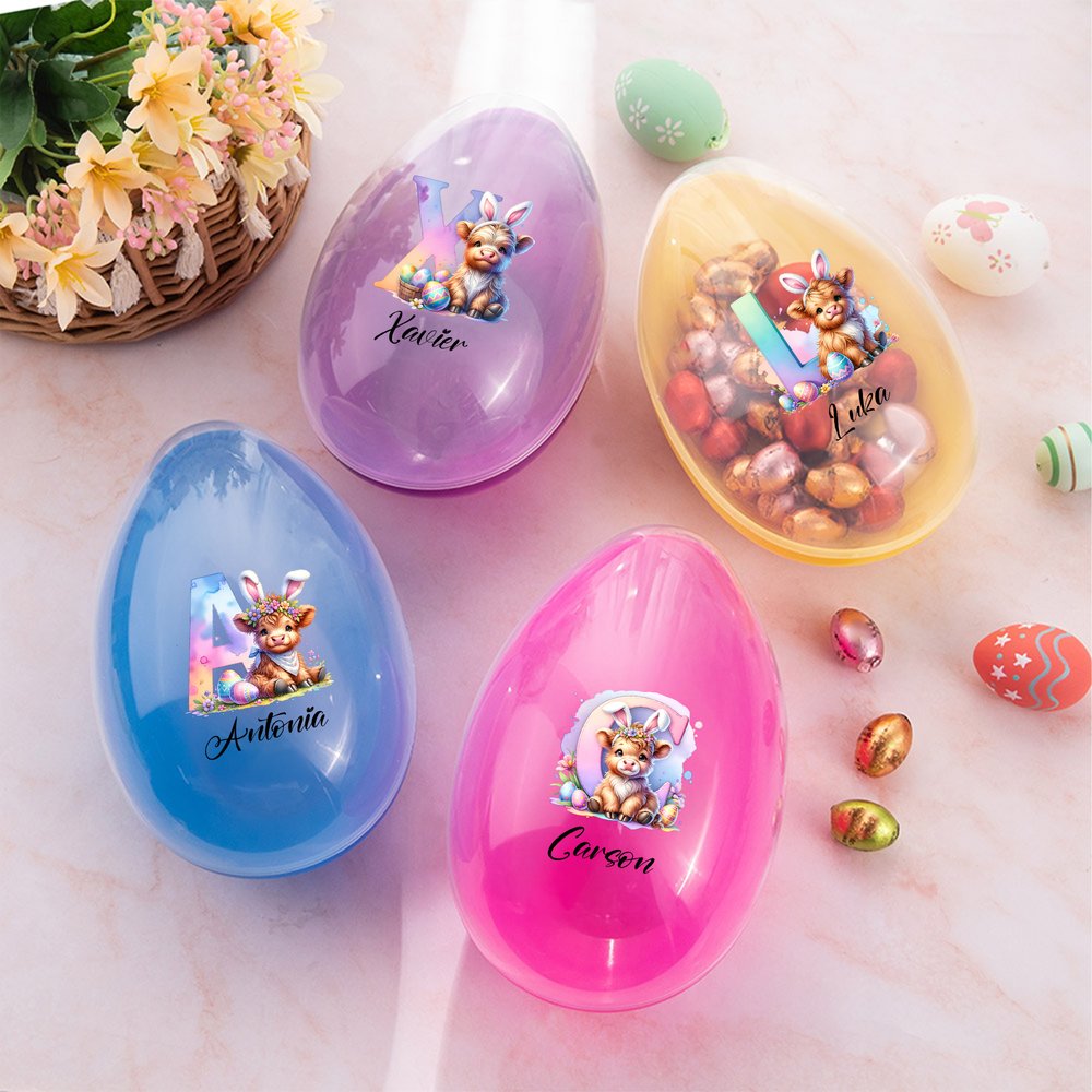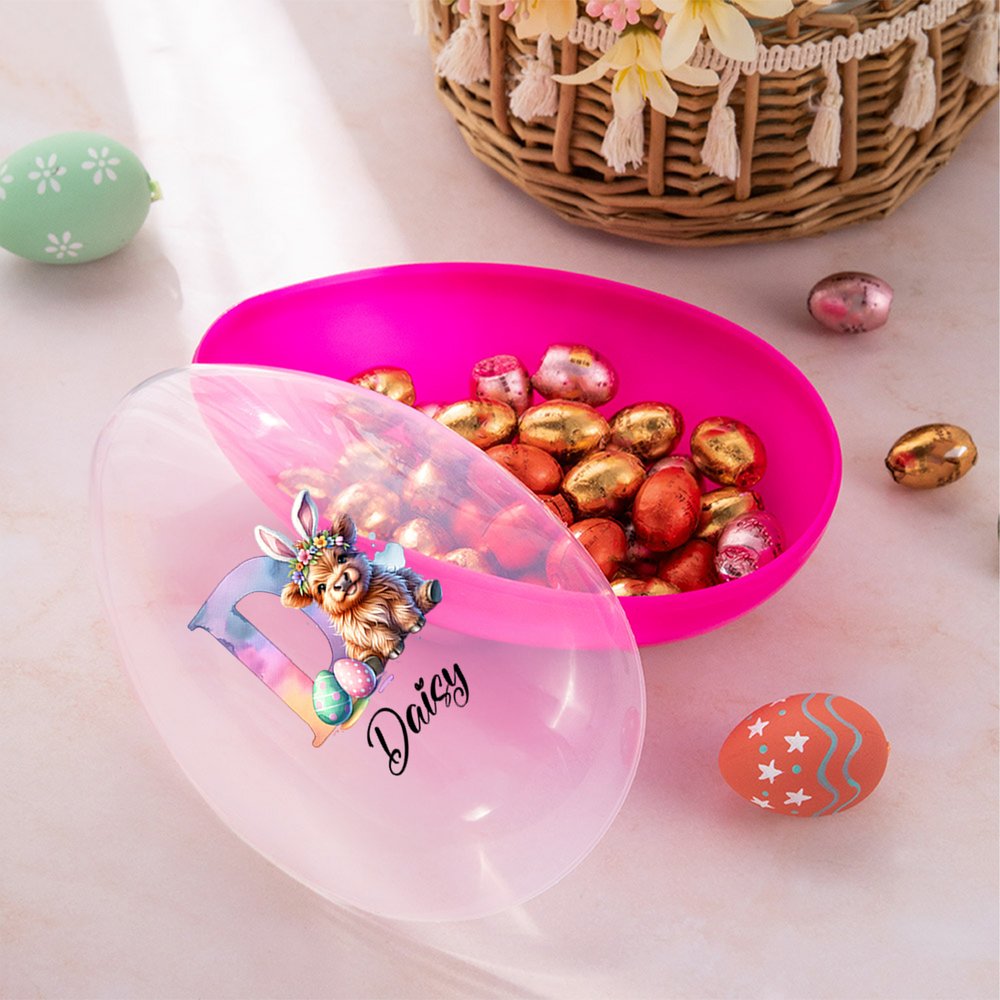 Denna design är centrerad kring Highland-kossan, som symboliserar motståndskraft och lycka, och har anpassningsbara initialer och namn, tillsammans med bedårande påskelement. Den finns i rosa, gult, blått och lila och har en livlig och festlig stil som är full av julglädje.