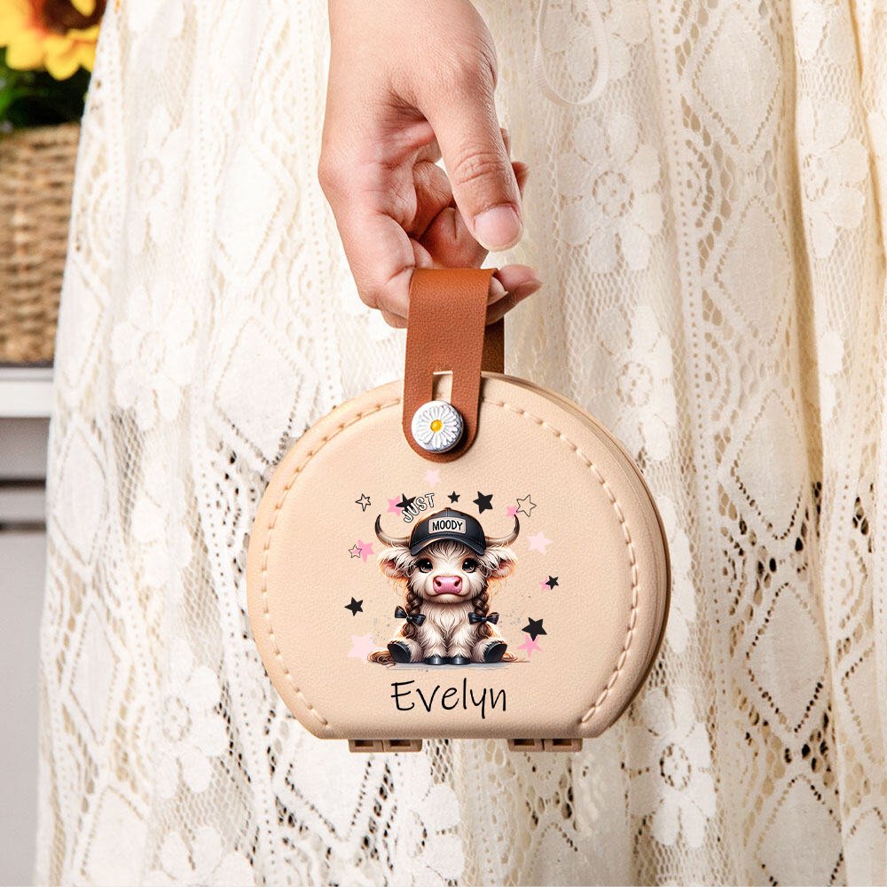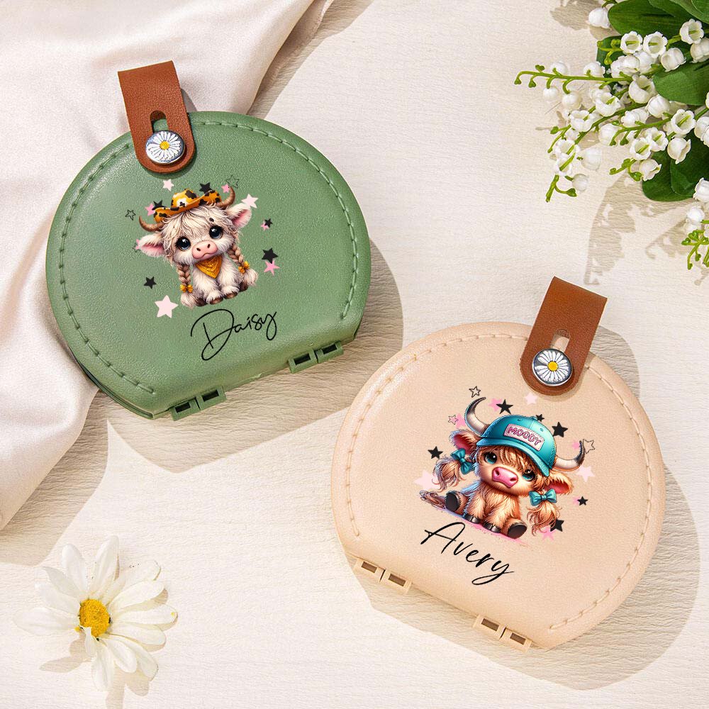 Den här bärbara syskrinet har en söt tecknad bild av en highland cow omgiven av stjärnor och blommor, vilket ger ett roligt och personligt element. Kombinera den med ett anpassningsbart namn för att skapa en unik och praktisk gadget.