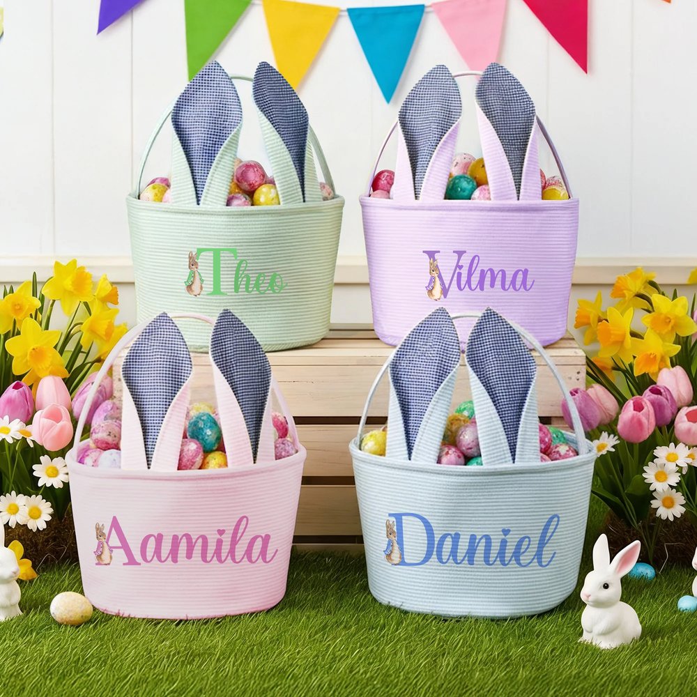 Gör denna påskkorg unik för ditt barn: välj mellan 4 glada färger, välj Peter Rabbit-mönster och lägg till ett namn — och förvandla en enkel påskkorg till en personlig skatt som känns som om den är gjord just för dem.