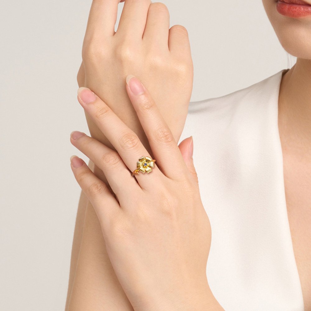 This birth flower ring features a delicate flower design with a birthstone at its center, representing the corresponding birth month. The intricate craftsmanship and attention to detail make it a stunning piece of jewelry.
