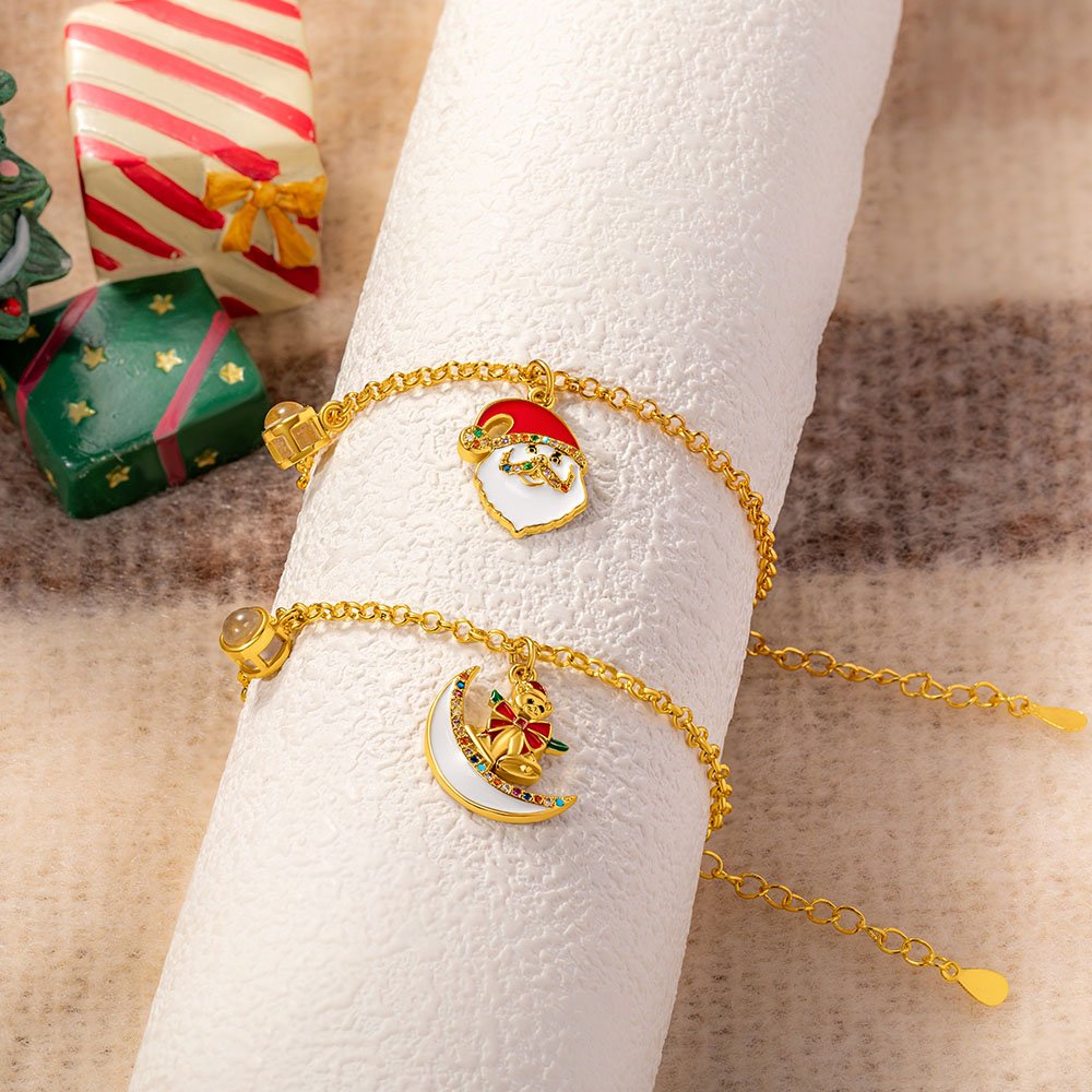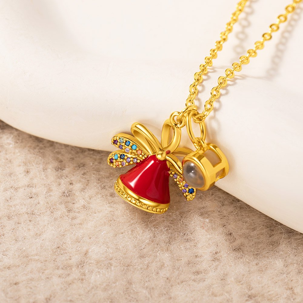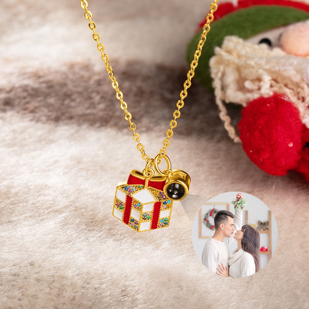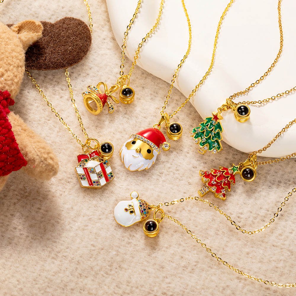 Det här vackra halsbandet eller armbandet har ett fotoprojektionshänge som finns i åtta härliga julmotiv, inklusive en julgran, jultomten, klockor, kransar och mycket mer. Anpassa det med ett speciellt foto för att skapa ett unikt och sentimentalt smycke som fångar kära minnen från högtiden.