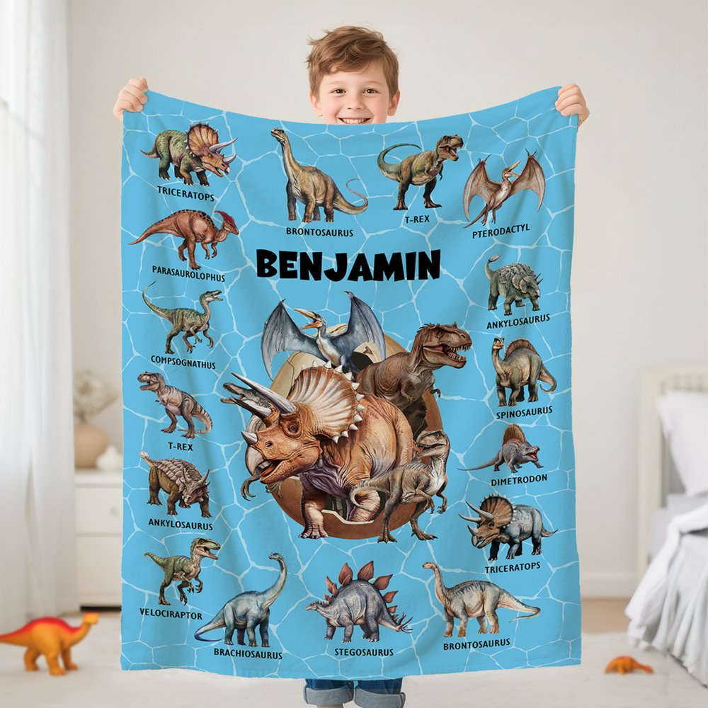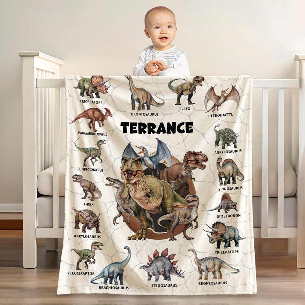 Den här filten är perfekt för unga dinosaurieälskare och sätter fart på fantasin samtidigt som den ger mjuk, innerlig komfort. Den är perfekt till jul, födelsedagar eller barndagen, och den personliga touchen visar att du bryr dig - den ger både lekfull charm och ett bestående affektionsvärde.