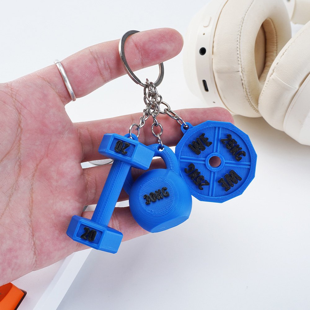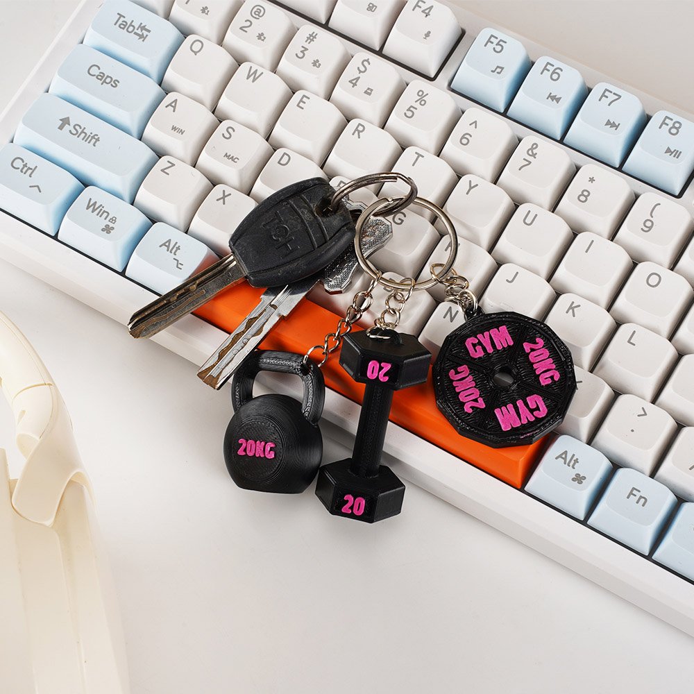 Denna unika nyckelring har en noggrant utformad berlock som representerar viktig träningsutrustning, inklusive en hantel, kettlebell och viktskiva. Du kan ställa in vikten på utrustningen och lägga till ditt namn, vilket gör den till en speciell fitnesssouvenir.