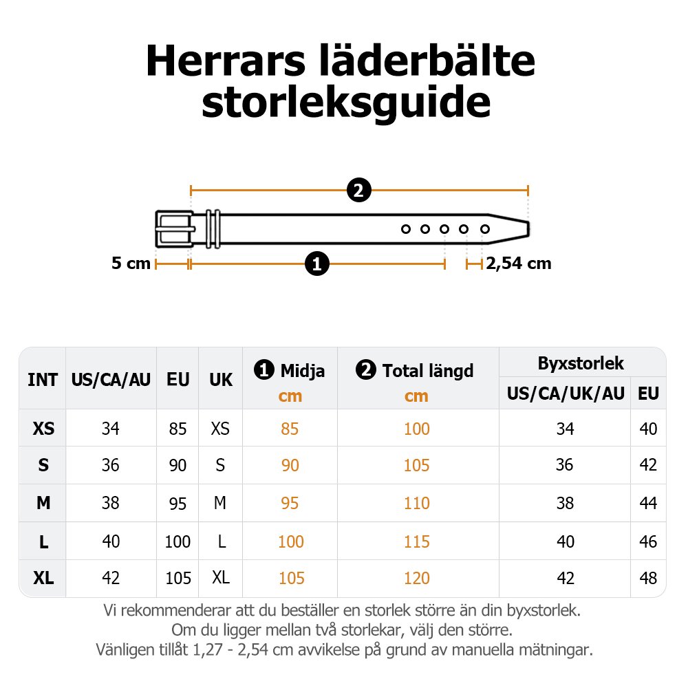 | Vård: | - Rengör försiktigt: Torka av bältet med en mjuk, fuktig trasa för att avlägsna smuts och skräp, men använd inte starka kemikalier eller rengöringsmedel som kan skada lädret eller graveringen. - Justera spännet försiktigt: När du fäster bältet ska du göra det gradvis och undvika att dra åt spännet för hårt, eftersom det kan orsaka stress och för tidigt slitage på lädret med tiden. |