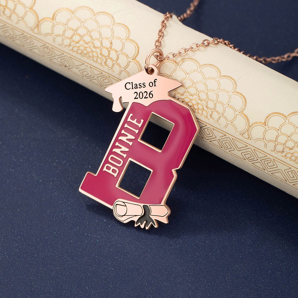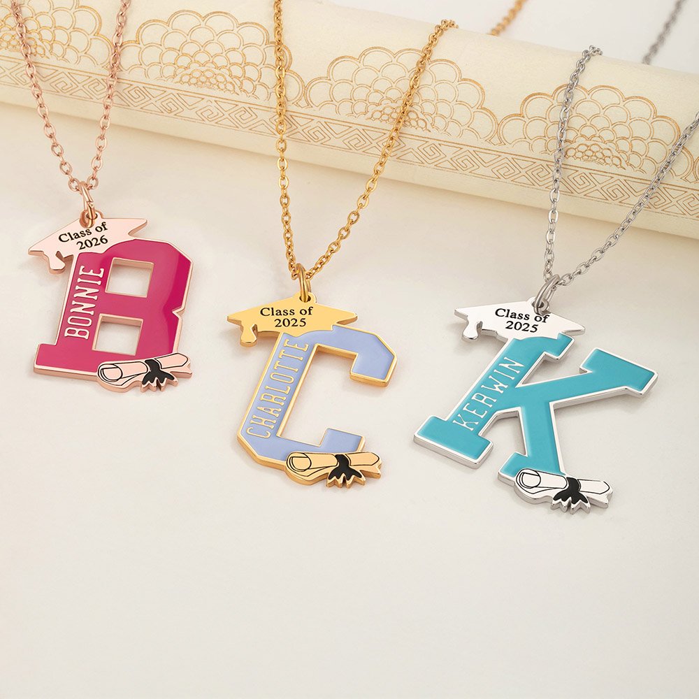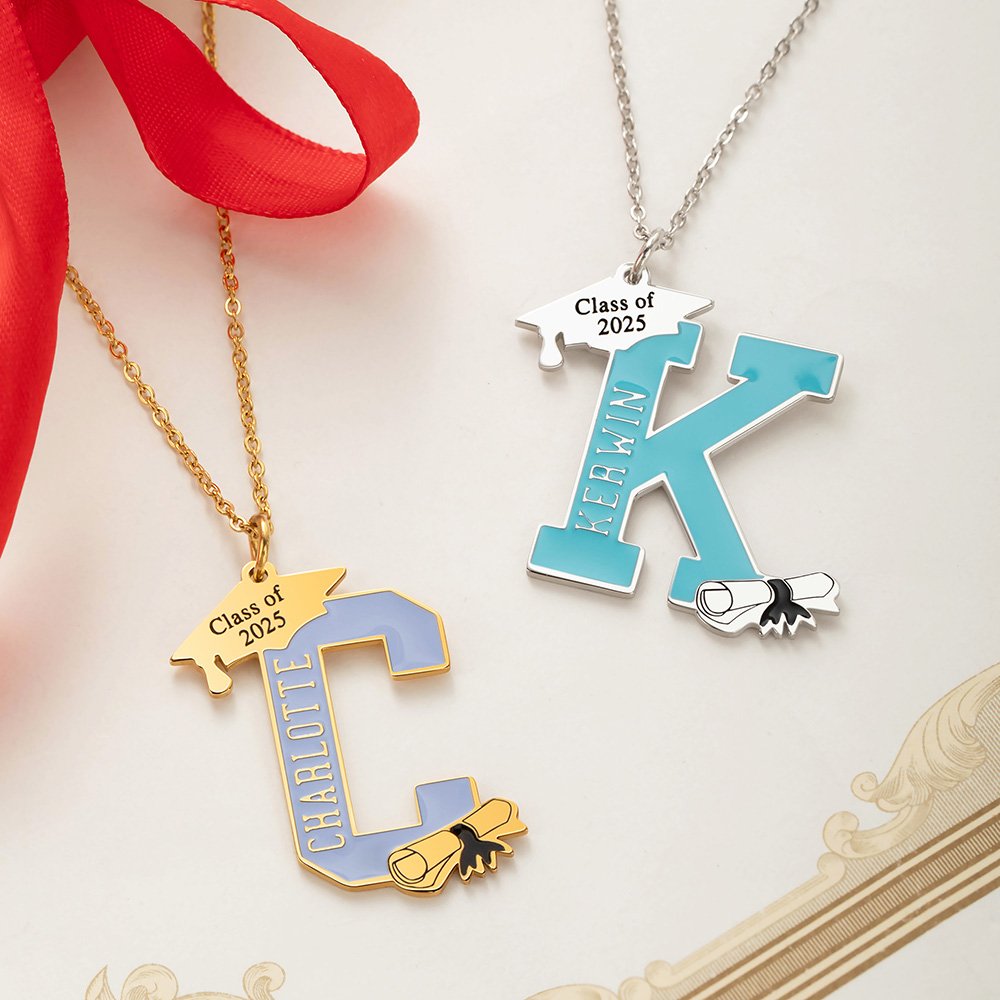 Fira dina examensprestationer med Personalized Initial Graduation Necklace. Detta unika smycke gör att du kan anpassa initialen, lägga till ditt namn och inkludera examensåret graverat tillsammans med en charmig examensmössa. Initialen kan också ha en födelsemånadsfärg, vilket gör det till en verkligt personlig och meningsfull minnessak för denna speciella milstolpe.