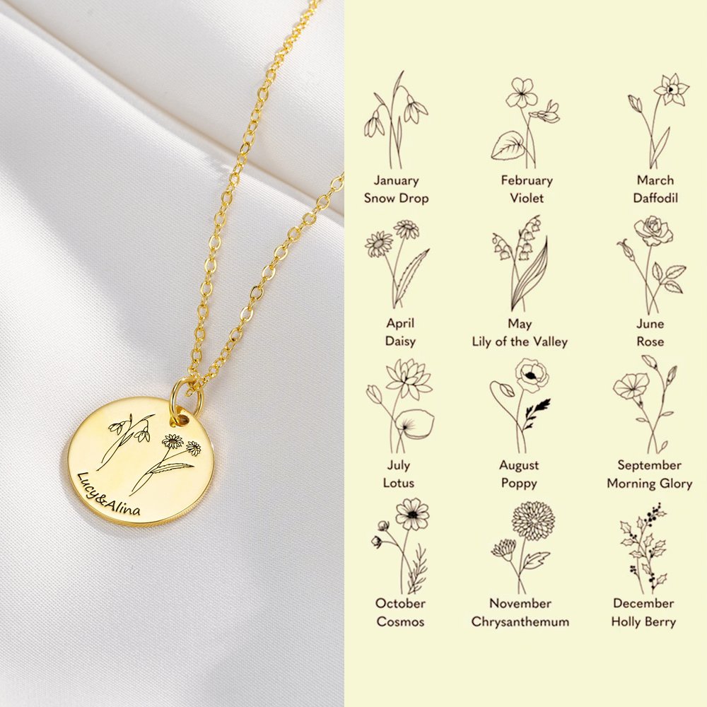 Detta halsband med en unik födelsemånad blomma designelement, inte bara vacker och generös. Du kan välja 1 till 3 födelseblommor och anpassa namn för att anpassa ditt exklusiva halsband. Denna anpassningsfunktion kommer perfekt att uttrycka din personlighet och framhäva din elegans och charm. Ordningen för att anpassa blommor och namn är från vänster till höger.